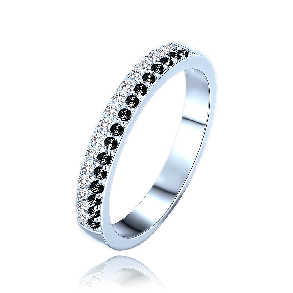 MINET Luksusowy pierścien srebrny z białymi i czarnymi cyrkoniami wielkość 21