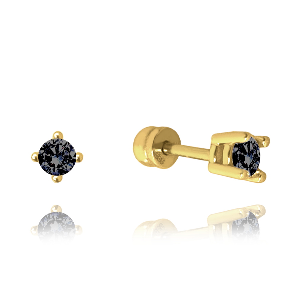 MINET Złote kolczyki na wkręt z czarnymi cyrkoniami Au 585/1000 1,10g