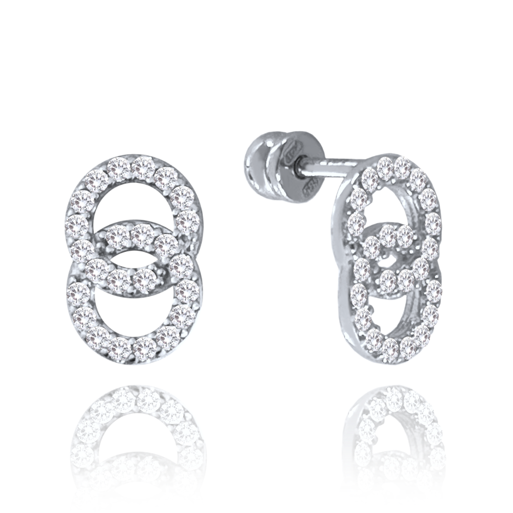 MINET Eleganckie kolczyki wkrętki z białego złota z białymi cyrkoniami Au 585/1000 1,50g