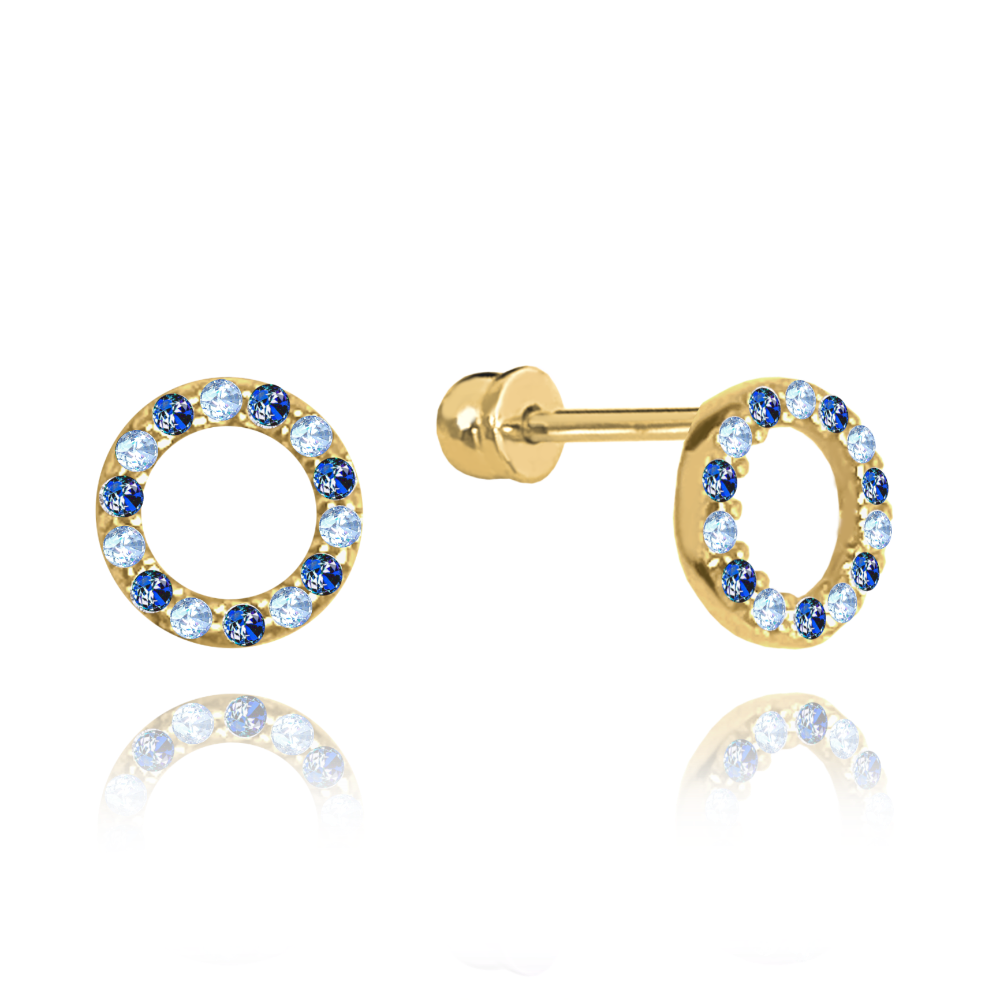 MINET Złote kolczyki wkrętki z niebieskimi i granatowymi cyrkoniami Au 585/1000 1,35g