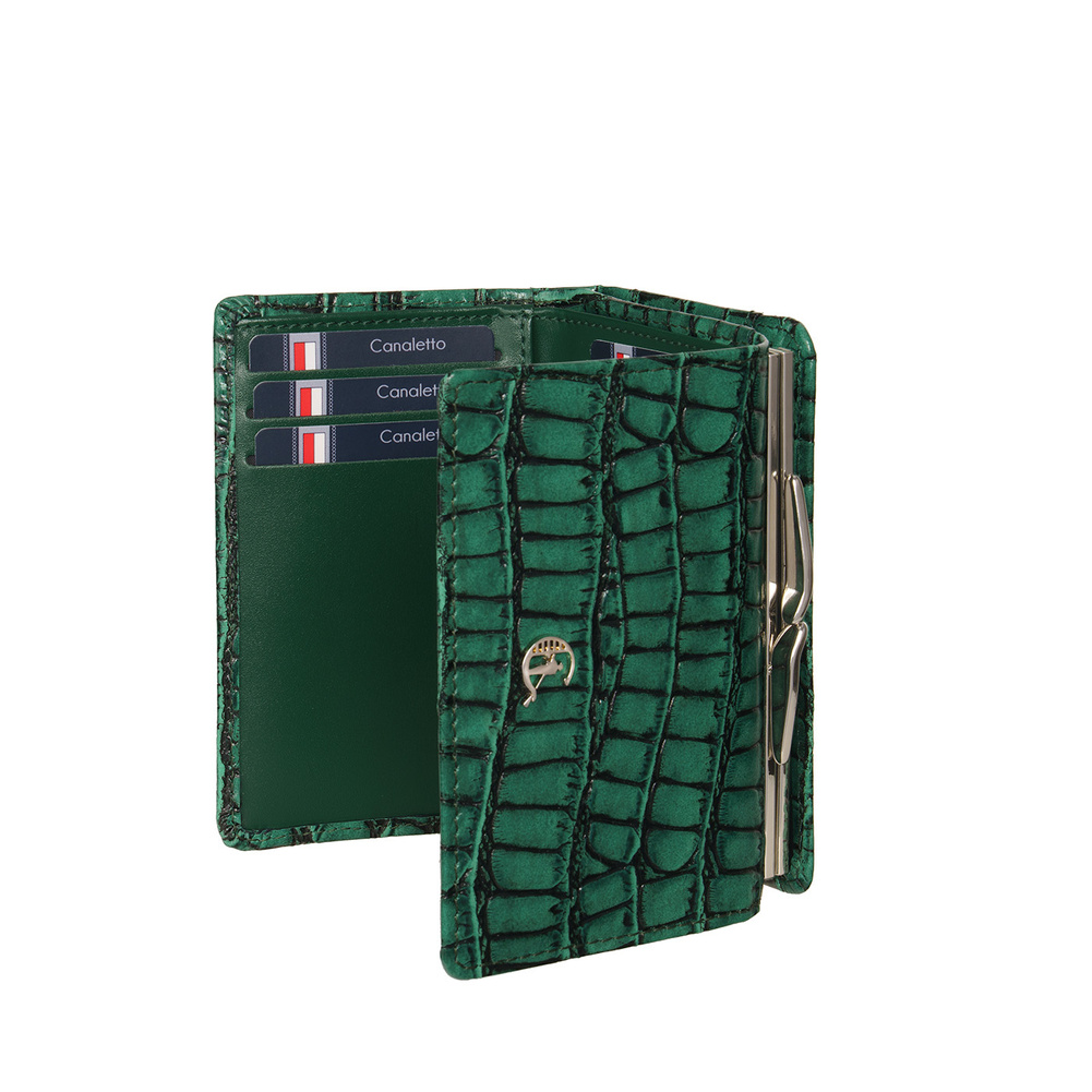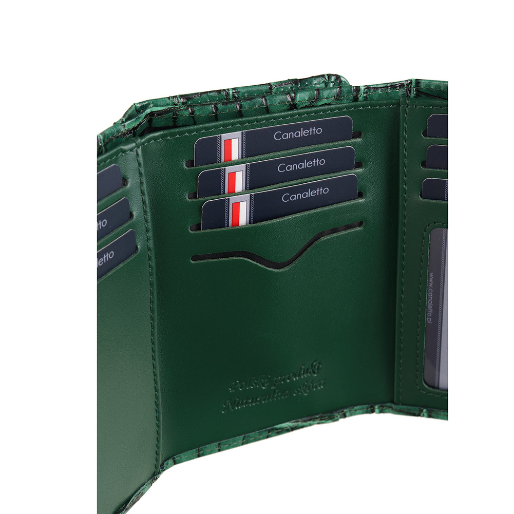 - Stylowy zielony portfel damski Canaletto z naturalnej skóry tłoczonej na wzór krokodyla. Kompaktowy, funkcjonalny i z ochroną RFID. Wybierz jakość, bezpieczeństwo i ponadczasowy design!