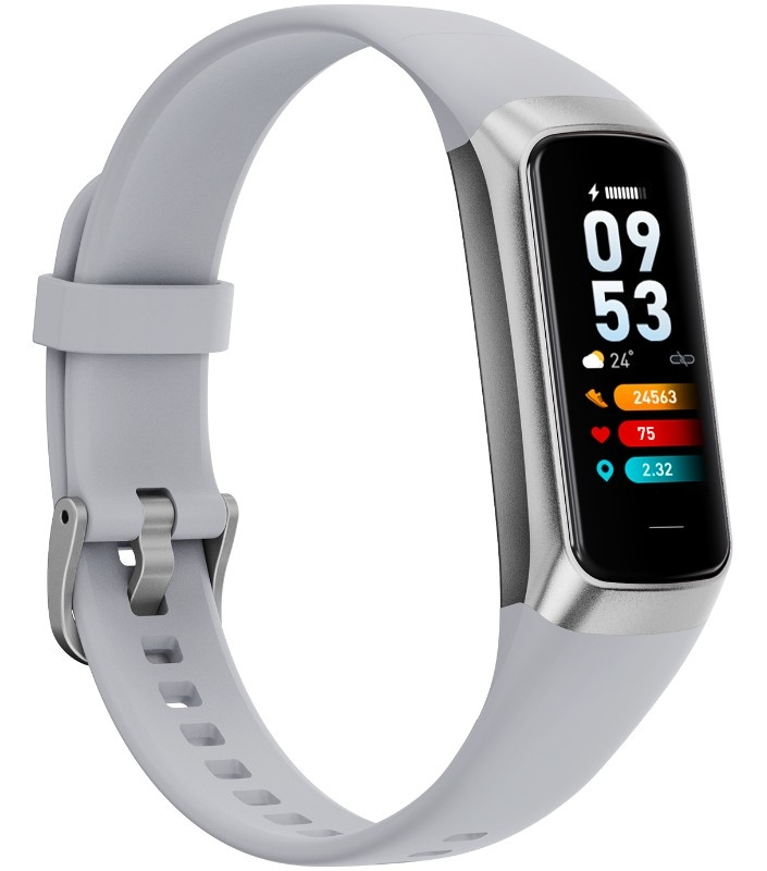 Mały, zgrabny, a tak wiele potrafi. Ten smartband to idealny wybór dla aktywnej kobiety, która ceni minimalizm, wygodę i technologię w pięknej formie. Smukła konstrukcja, koperta w kolorze srebra i szary silikonowy pasek tworzą kobiece, a zarazem nowoczesne połączenie. Do tego hipoalergiczne materiały, które są delikatne dla skóry – idealne na co dzień.