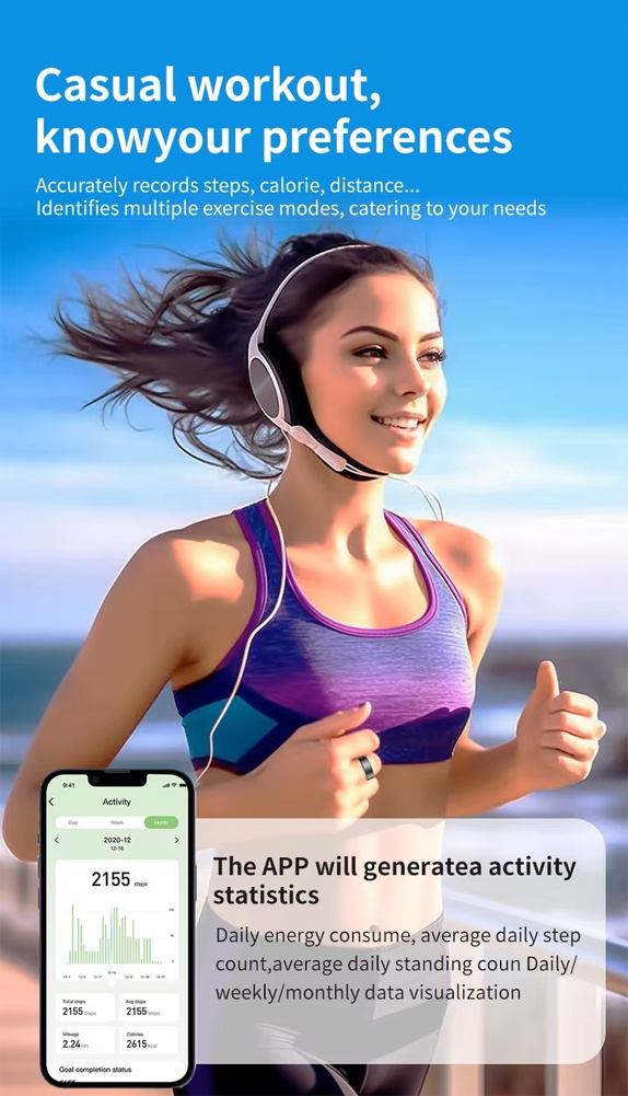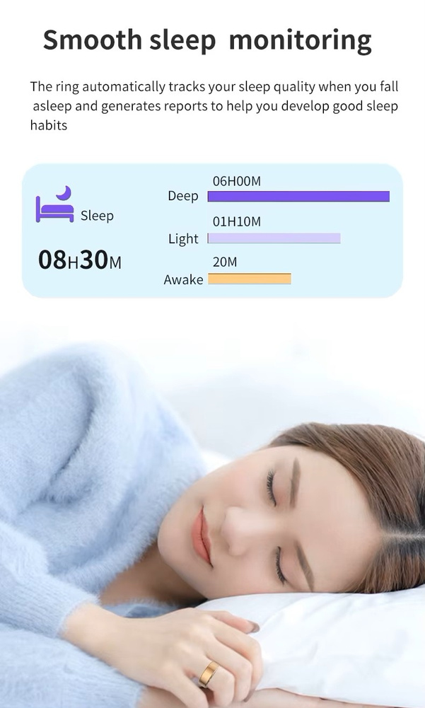 Dane w czasie rzeczywistym dostępne przez aplikację QRing. Nawet jeśli pierścień nie jest aktualnie połączony z telefonem, potrafi niezależnie monitorować organizm, rejestrować poziom tlenu we krwi oraz tętno. Dane zostaną zsynchronizowane z aplikacją przy następnym połączeniu.