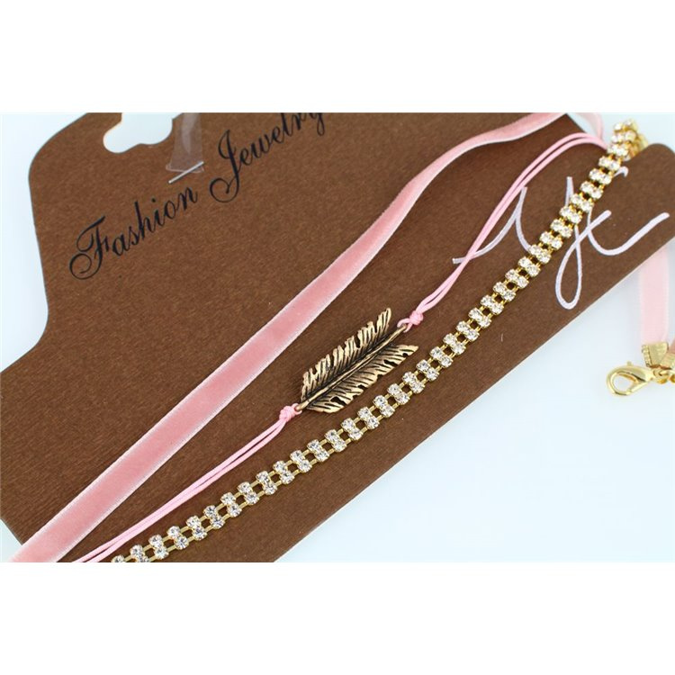 NASZYJNIK CHOKER PIÓRKO I KRYSZTAŁY - RÓŻ N521R