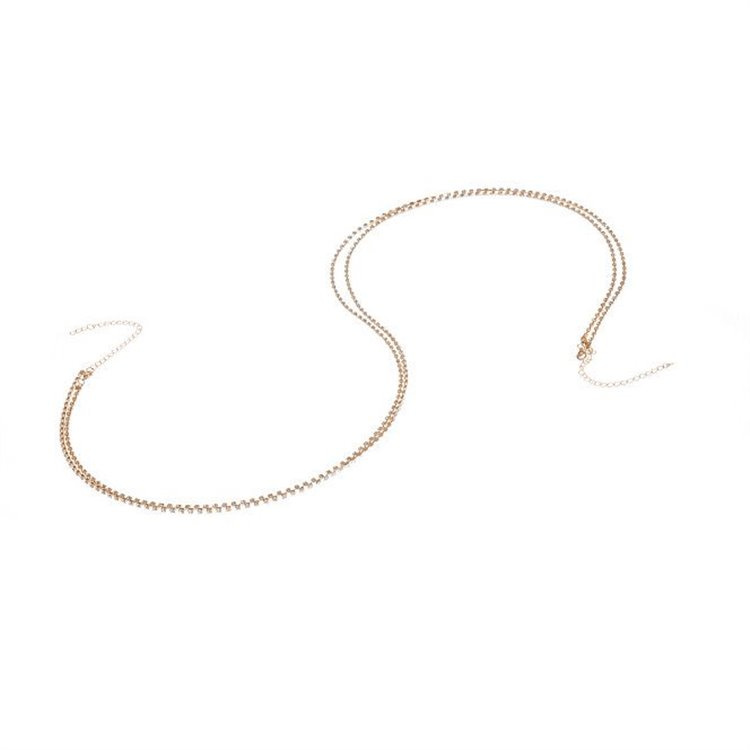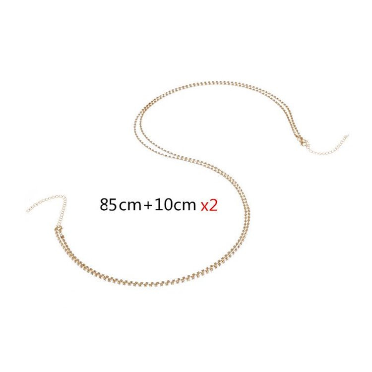 Długi, podwójny naszyjnik z drobnymi kryształkami.