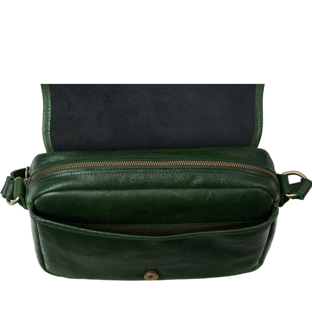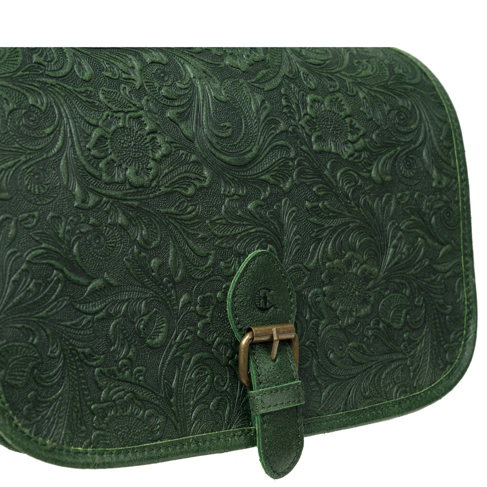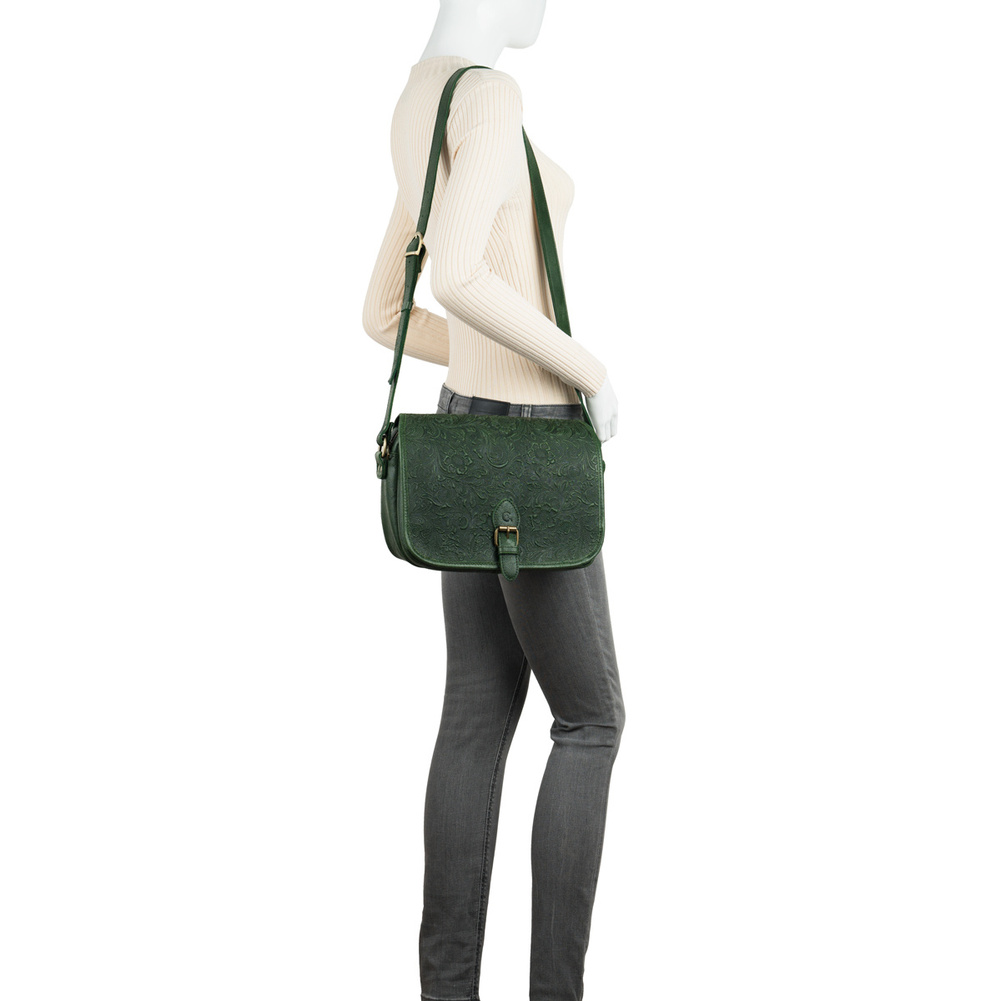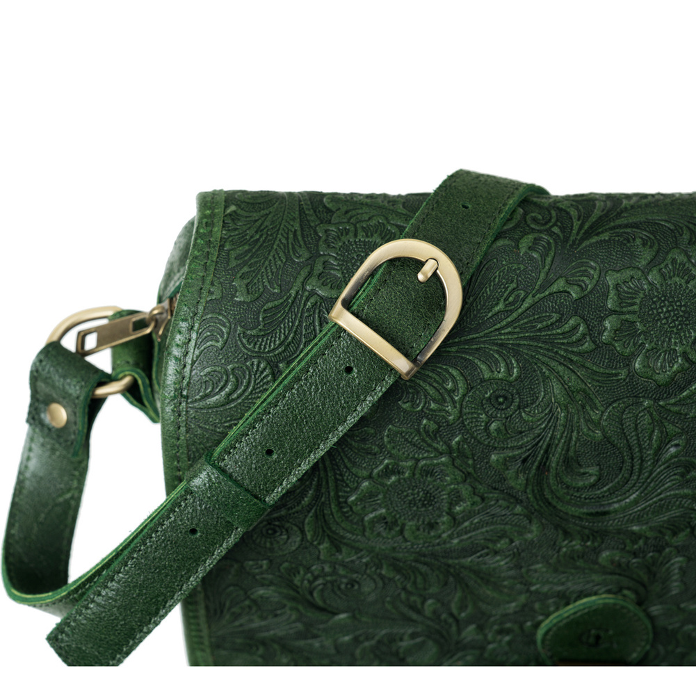 - Naturalna skóra vintage z klapką z tłoczeniem, która wyróżnia torebkę na tle innych dodatków;