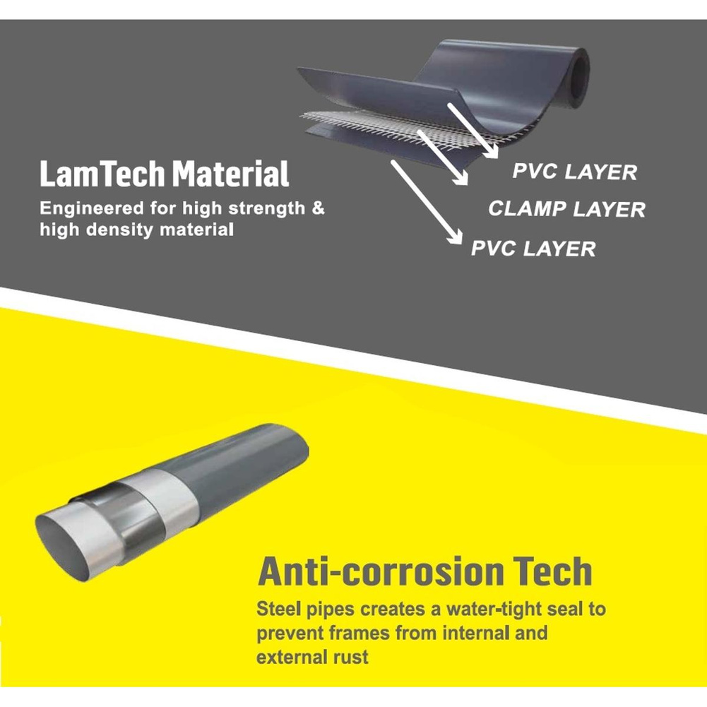 - powłoka basenu wykonana z potrójnie laminowanego PVC o dużej wytrzymałości i gęstości zapewnia długą żywotność