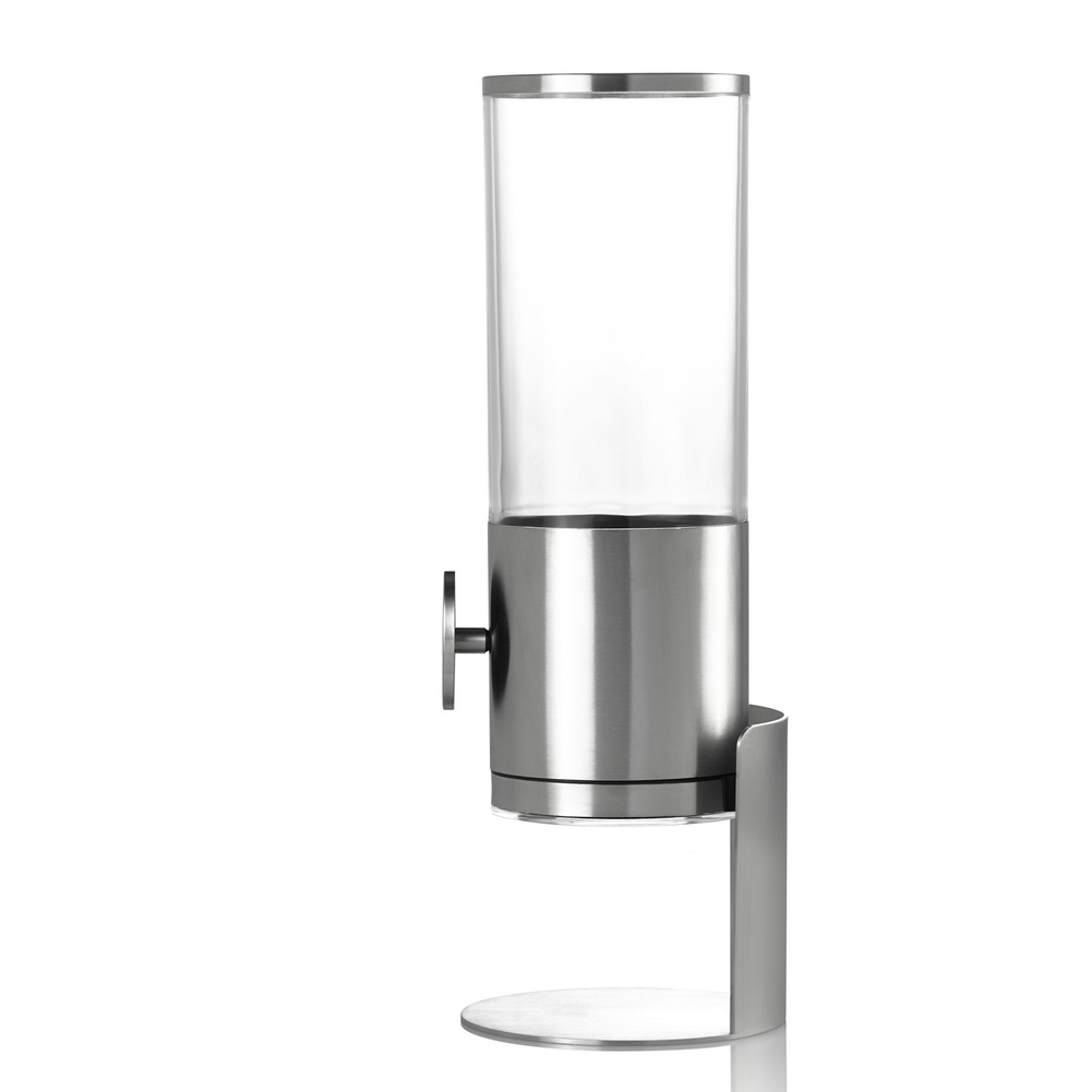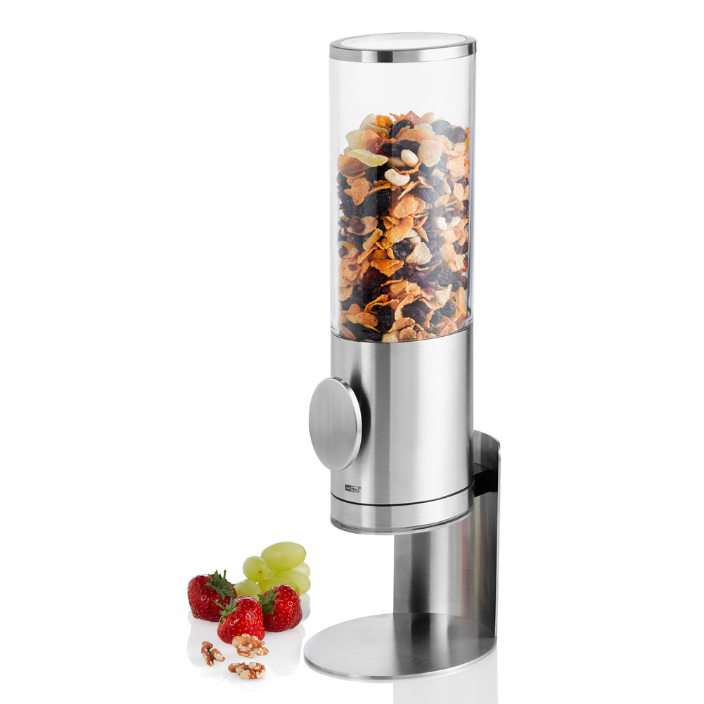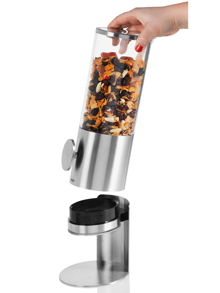 Dyspenser DEPOSITO może być wykorzystywany do różnego rodzaju płatków kukurydzianych i musli, ryżu, pszenicy, cukierków, orzechów i innych sypkich produktów spożywczych. Pojemnik może zostać odłączony od podstawy. Zawartość jest chroniona przykrywką, a porcjowanie przebiega z łatwością i bez niechcianych okruchów. Prosta budowa dyspensera sprawia, że rozkładanie i czyszczenie jest łatwe. Nie należy myć w zmywarce. Produkt zaprojektowany przez AdHoc Design Team. Materiał: stal nierdzewna i akryl. Wymiary: średnica – 15cm, wysokość – 42,5cm, pojemność – ok. 1,5l.Bezpieczeństwo - rodzaj ostrzeżenia