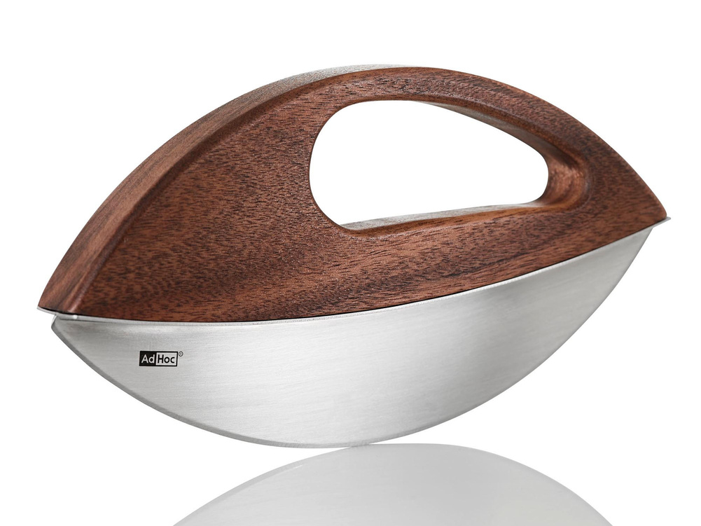 Stworzony do siekania ziół, krojenia pizzy i nie tylko! Wygodny i prosty w użyciu dzięki dopasowanemu do dłoni uchwytowi. W zestawie znajduje się podstawka do przechowywania. Nie należy myć w zmywarce. Produkt został zaprojektowany przez Gabriele Kaltenbach. Materiał: drewno akacjowe, stal nierdzewna. Wymiary noża: długość – 19,8cm, szerokość – 2,2cm, wysokość – 10,2cm. Wymiary z podstawą: długość – 23,2cm, szerokość – 2,2cm, wysokość – 10,9cm.Bezpieczeństwo - rodzaj ostrzeżenia
