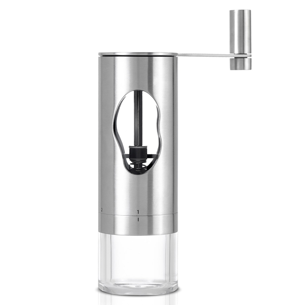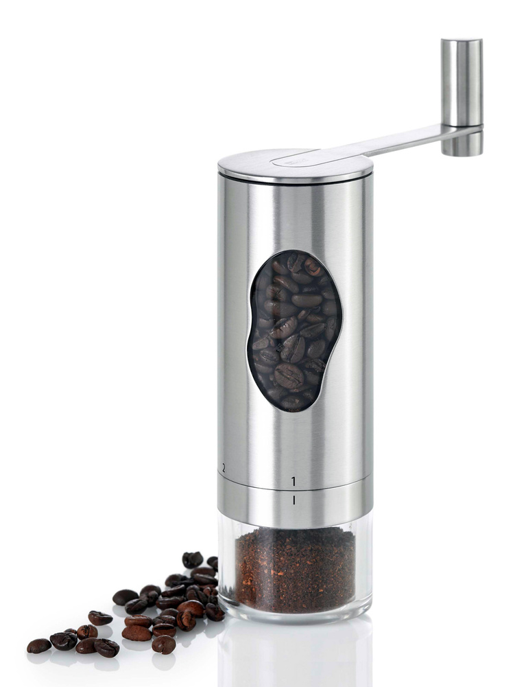 Młynek do kawy MRS. BEAN umożliwia łatwe, nie wymagające wysiłku mielenie ziaren kawy dzięki niezwykle wydajnym żarnom CeraCutXL, które są wolne od zapachów oraz smaków. Zewnętrzna pokrywa z korbką może być odłączana w celu łatwego napełnienia młynka. Na zewnątrz młynka znajduje się 6 – stopniowa skala grubości mielenia PRECISE+®, którą można dopasować do własnych potrzeb. Pojemność przezroczystego pojemnika wynosi ok 50g ziaren kawy, natomiast pojemnik na zmieloną kawę może pomieścić 25g kawy zmielonej na nastawie grubości mielenia 2. Pojemnik na zmieloną kawę jest łatwy w demontażu. Produkt został zaprojektowany przez AdHoc Design Team. Materiał: stal nierdzewna, akryl, plastik. Wymiary: średnica bez korbki – 6cm, średnica z korbką – 14,6cm, wysokość – 18cm.