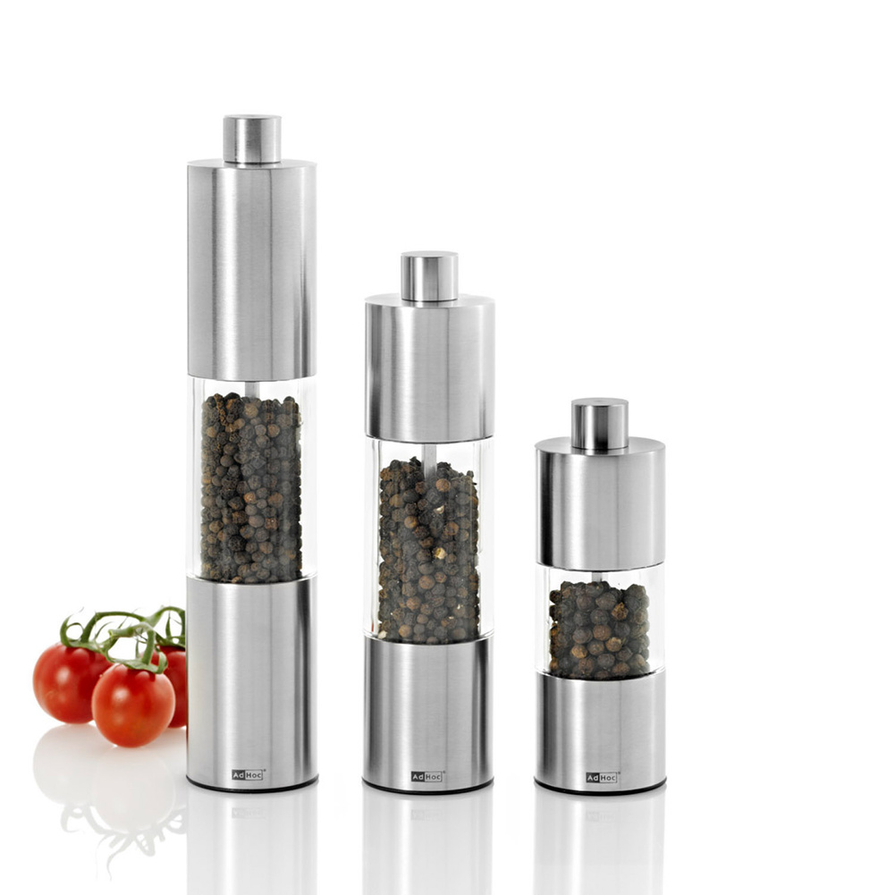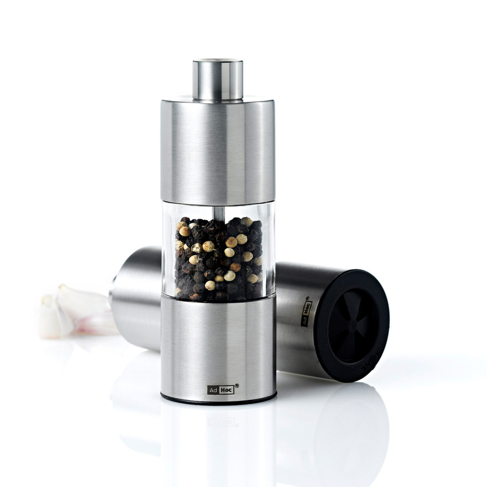 Młynek został wyposażony w płynną regulację grubości mielenia. Posiada bardzo wydajne żarna CeraCut®, które są wolne od zapachów i smaków, a także są niezwykle odporne na zużycie i korozję. Akrylowy pojemnik na przyprawy umożliwia łatwą obserwację zawartości, a mechanizm zamykający żarna zapewnia czystość blatu. Produkt został zaprojektowany przez AdHoc Design Team. Materiał: stal nierdzewna/akryl, ceramiczne żarna CeraCut®. Wymiary: wysokość – 13cm, średnica – 4,5cm.Bezpieczeństwo - rodzaj ostrzeżenia