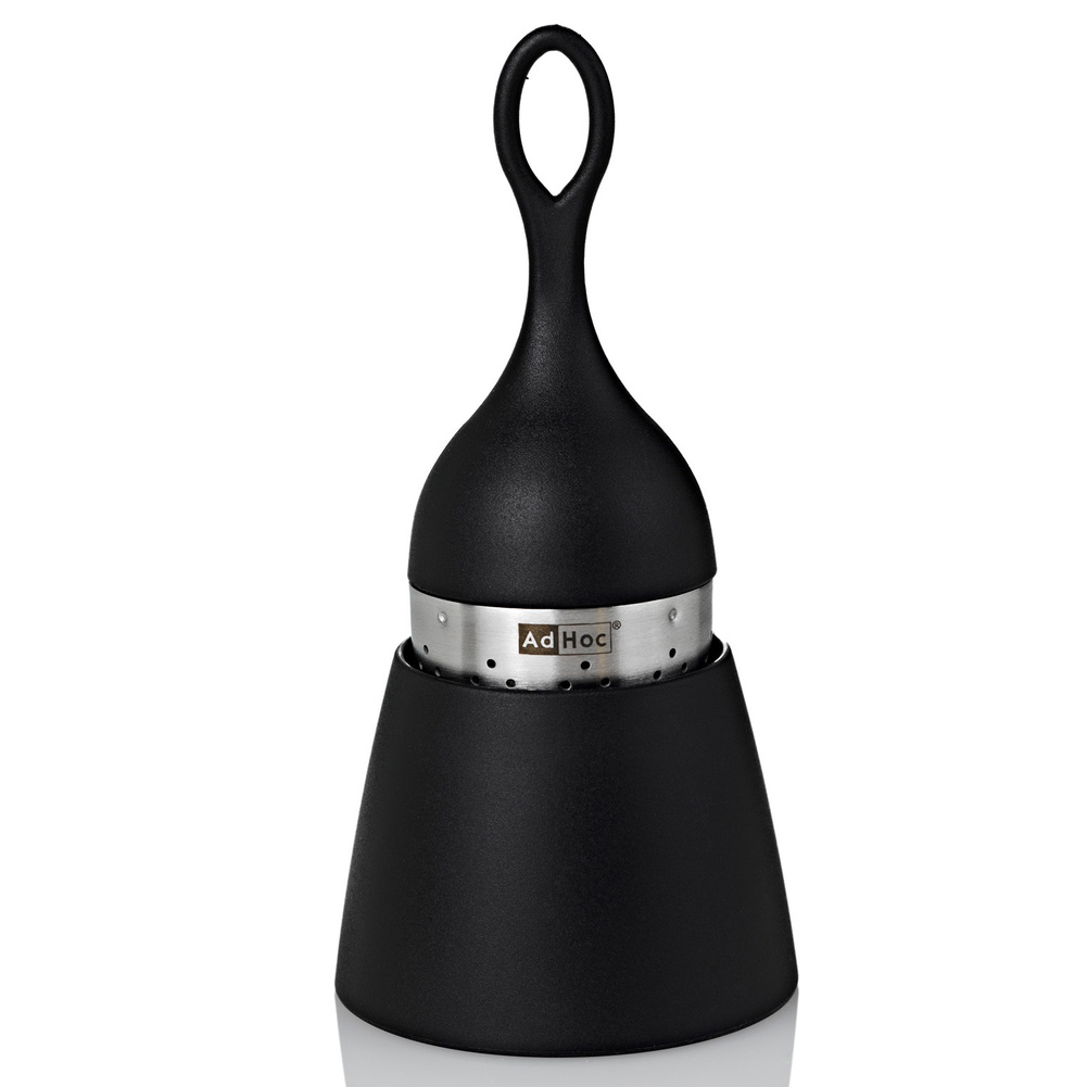 Jedyny w swoim rodzaju zaparzacz do herbaty na świecie. Można go bardzo łatwo otworzyć i napełnić, a zawarta w zestawie podstawka zbierze wszystkie krople po zakończeniu parzenia. Można myć w zmywarce. Produkt został zaprojektowany przez AdHoc Design Team. Materiał: stal nierdzewna, plastik. Wymiary: średnica – 4cm, wysokość – 12,5cm.Bezpieczeństwo - rodzaj ostrzeżenia