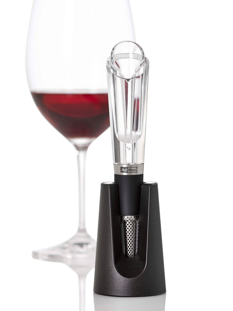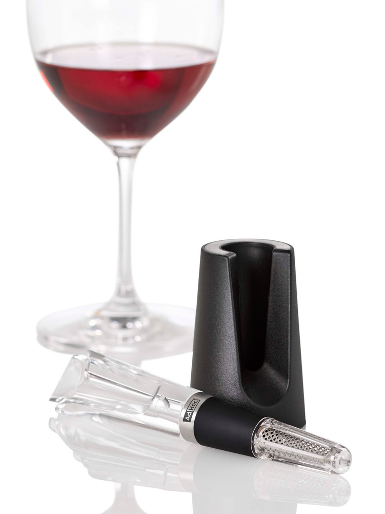 Dekanter AIROVIN został stworzony do intensywnego napowietrzania wina podczas nalewania. Zastosowana zasada Venturiego sprawia, że smak wina jest jeszcze bardziej wzmożony. Zintegrowany z dekanterem nalewak zdecydowanie ułatwia nalewanie wina, jednocześnie zapobiegając kapaniu. Silikonowy koreczek dba o to, by dekanter był bezpiecznie umocowany w szyjce butelki. Dekanter jest wyposażony również w filtr ze stali nierdzewnej, powstrzymujący grubsze cząsteczki w zawiesinie. W zestawie zawarta jest podstawka zbierająca kropelki, a także będąca miejscem do przechowywania dekantera. Nie należy myć w zmywarce. Produkt został zaprojektowany przez AdHoc Design Team. Materiał: stal nierdzewna, plastik, silikon. Wymiary: średnica – 3cm, wysokość – 16cm. Wymiary z podstawką: średnica – 5cm, wysokość – 17,5cm.Bezpieczeństwo - rodzaj ostrzeżenia