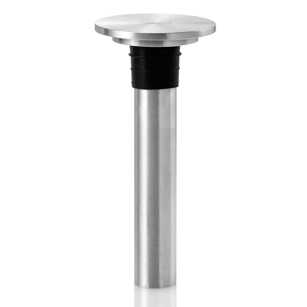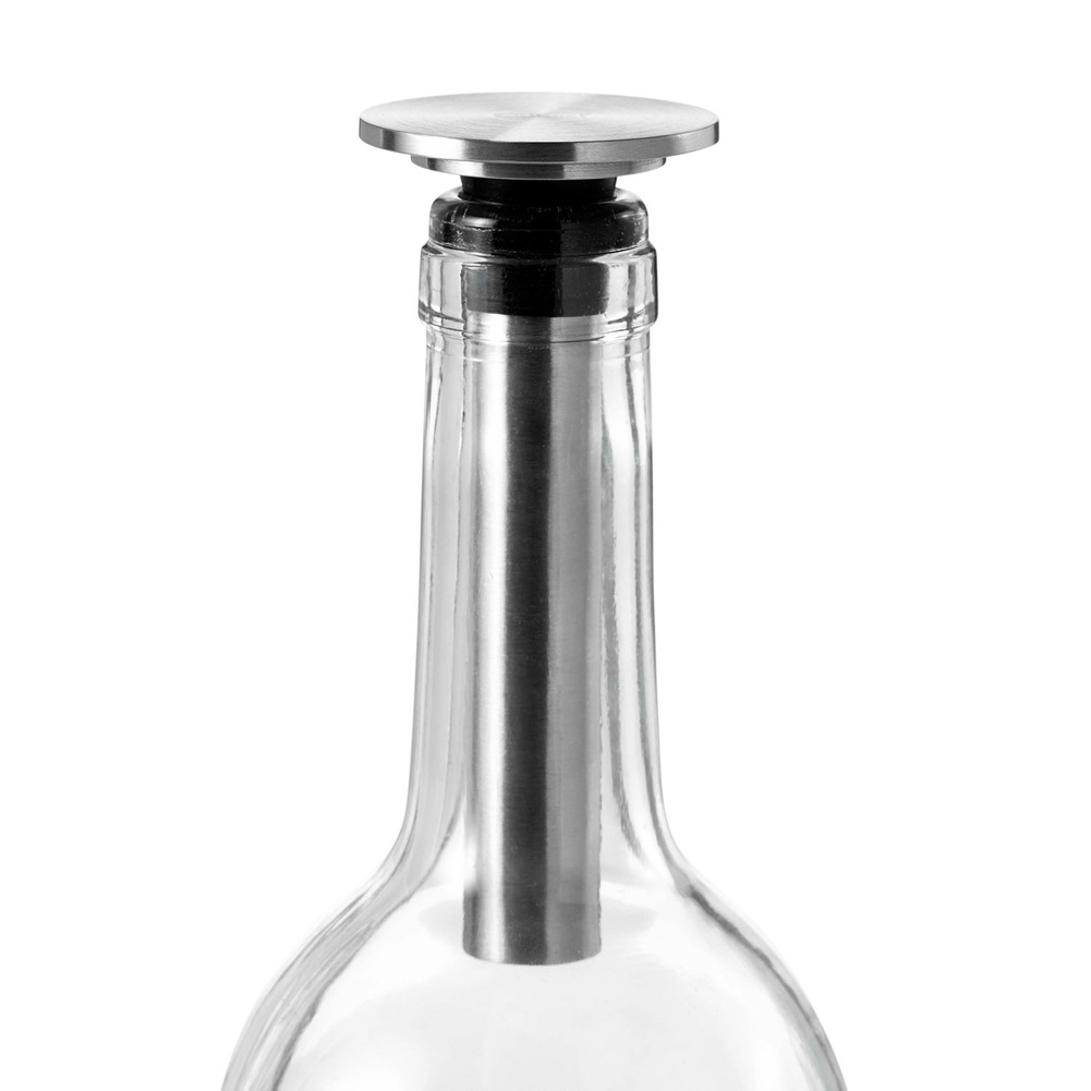 Pompka poprzez wypompowywanie powietrza z wnętrza butelki zatrzymuje proces utleniania wina i zachowuje jego aromat. W celu wypompowania powietrza należy kilkukrotnie wykonać ruch tłokiem w górę i w dół. Jest niezwykle płaska, dzięki czemu świetnie nadaje się do przechowywania w lodówce. Można ją dopasować do pozostałych produktów z kolekcji CHAMP. Produkt został zaprojektowany przez Gabriele Kaltenbach. Materiał: stal nierdzewna, silikon. Wymiary: średnica – 4,5cm, wysokość – 9,5cm.Bezpieczeństwo - rodzaj ostrzeżenia