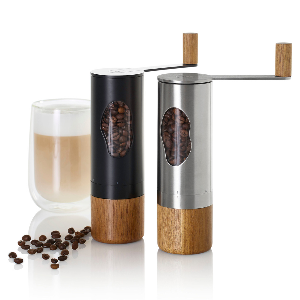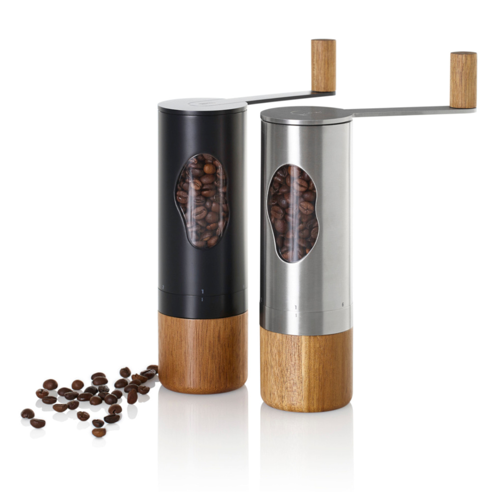 Młynek do kawy MRS. BEAN sprawia, że mielenie ziaren kawy staje się łatwe i nie wymagające wysiłku. Zastosowane w urządzeniu żarna CeraCut® są nie tylko wydajne, odporne na korozję i zużycie. Żarna są obojętne na smaki i zapachy, co za każdym razem pozwala uzyskać czysty i niezakłócony smak zmielonych ziaren kawy. Po zdjęciu pokrywy z korbką można łatwo napełnić młynek (pokrywa zakładana jest na wcisk). Pojemność zbiornika na kawę to 50g. Na spodzie młynka znajduje się drewniany, odkręcany pojemnik na zmieloną kawę jego pojemność to 25g kawy o grubości mielenia 2. Na zewnątrz młynka znajduje się 6 – stopniowa skala grubości mielenia PRECISE+®, którą można dopasować do własnych potrzeb: 1 (drobno) do 6 (grubo) zmielona. Pojemnik na zmieloną kawę jest łatwy w demontażu. Należy jedną ręką chwycić za metalową opaskę poniżej skali mielenia a drugą za drewniany pojemnik, a następnie odkręcić go zgodnie z ruchem wskazówek zegara. Oprócz tego, zastosowany system CAP ułatwia demontaż korbki, dzięki czemu napełnienie młynka jest proste. Produkt został zaprojektowany przez AdHoc Design Team. Nie należy myć w zmywarce. Materiał: Stal nierdzewna, akryl, drewno akacja. Opakowanie: kartonowe pudełko prezentowe.Bezpieczeństwo - rodzaj ostrzeżenia