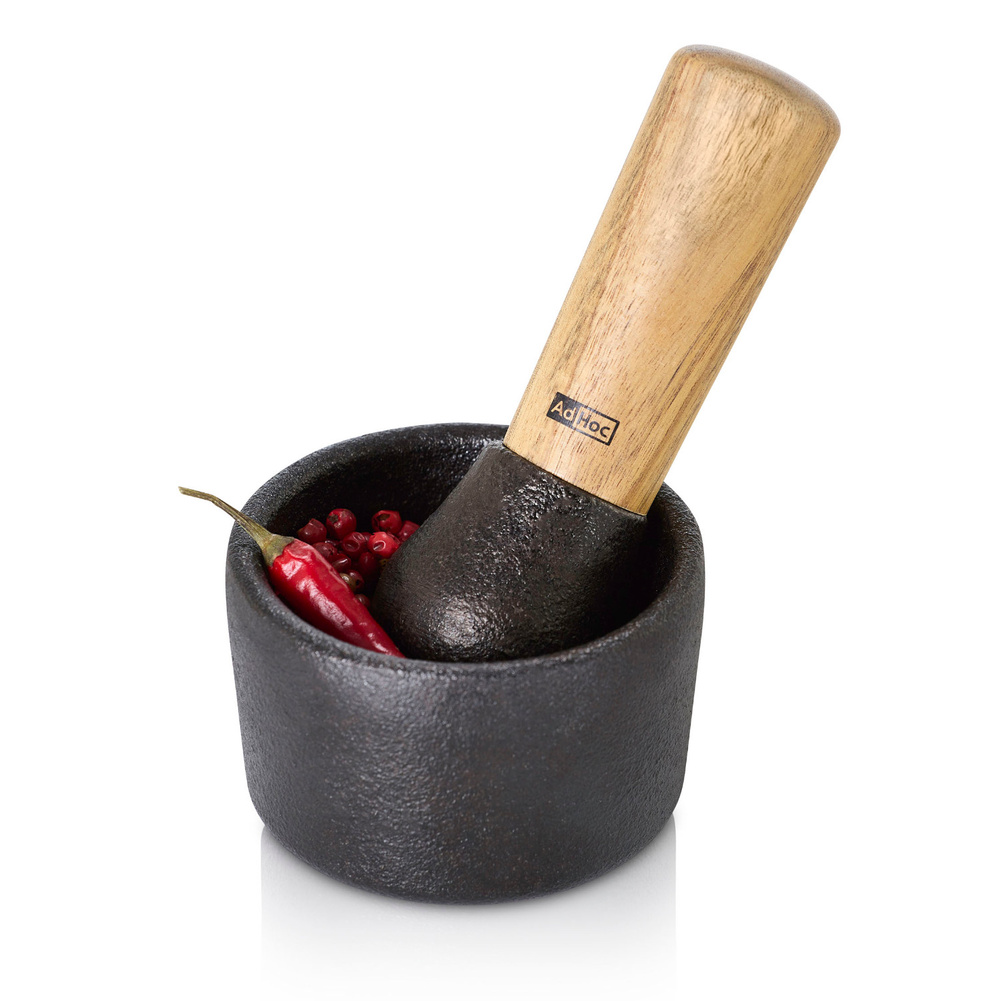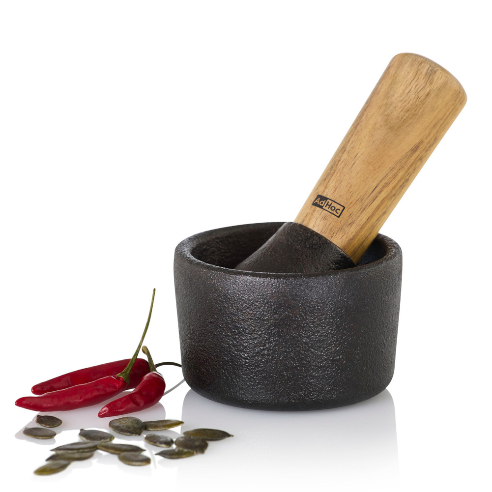 Camo.8 to Kompaktowy moździerz z żeliwną misą i solidnym tłuczkiem, w którym łatwo zmiażdżysz, skruszysz i zetrzesz pieprz, sól oraz inne przyprawy i zioła wydobywając z nich pełnię smaków i aromatów. Funkcjonalnie zaprojektowany sprosta różnym zadaniom. Niewielki rozmiar i kompaktowy kształt czynią go poręcznym narzędziem w każdej kuchni. Solidna rękojeść tłuczka wykonana jest z drewna akacjowego. Tłuczek pewnie leży w dłoni podczas pracy, a antypoślizgowe gumowe nóżki na spodzie misy zabezpieczają blat przed uszkodzeniami, zapewniając stabilność w trakcie pracy. Produkt został zaprojektowany przez Rolanda Kreitera. Moździerz należy umyć pod bieżącą wodą zaraz po użyciu i dokładnie osuszyć. Do mycia używać łagodnych detergentów i miękkich zmywaków. Nie należy myć w zmywarce. Materiał: żeliwo, drewno akacjowe. Opakowanie: kartonowe pudełko prezentowe.