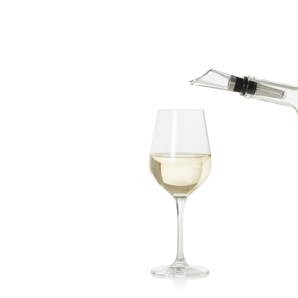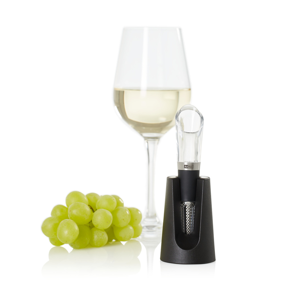 Nalewak do wina Vine to bardzo wygodne urządzenie pozwalające na nalewanie wina bez martwienia się o niesforne krople, które mogłyby poplamić stół lub obrus. Dzięki umiejętnemu wyprofilowaniu nalewak zawraca wszystkie nadmiarowe kropelki z powrotem do butelki. Oprócz tego, zawarty w nalewaku filtr, odseparuje wszystkie większe cząsteczki znajdujące się w winie. Silikonowa część nalewaka świetnie przylega do szyjki butelki zapewniając solidne i szczelne osadzenie. W zestawie znajduje się również podstawka, która w razie potrzeby posłuży jako miejsce do osuszenia nalewaka lub jego przechowywania. Zaleca się myć ręcznie. Produkt został zaprojektowany przez AdHoc Design Team. Materiał: stal nierdzewna, akryl, tworzywo sztuczne, silikon. Wymiary nalewaka: średnica – 2,7cm, wysokość – 13cm. Wymiary zestawu: średnica – 5,1cm, wysokość – 14,2cm. Przybliżone wymiary brutto: wysokość - 17,5cm, szerokość - 6,1cm, długość - 6,1cm. Opakowanie: kartonowe pudełko prezentowe.Bezpieczeństwo - rodzaj ostrzeżenia