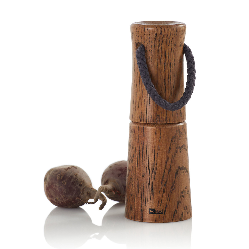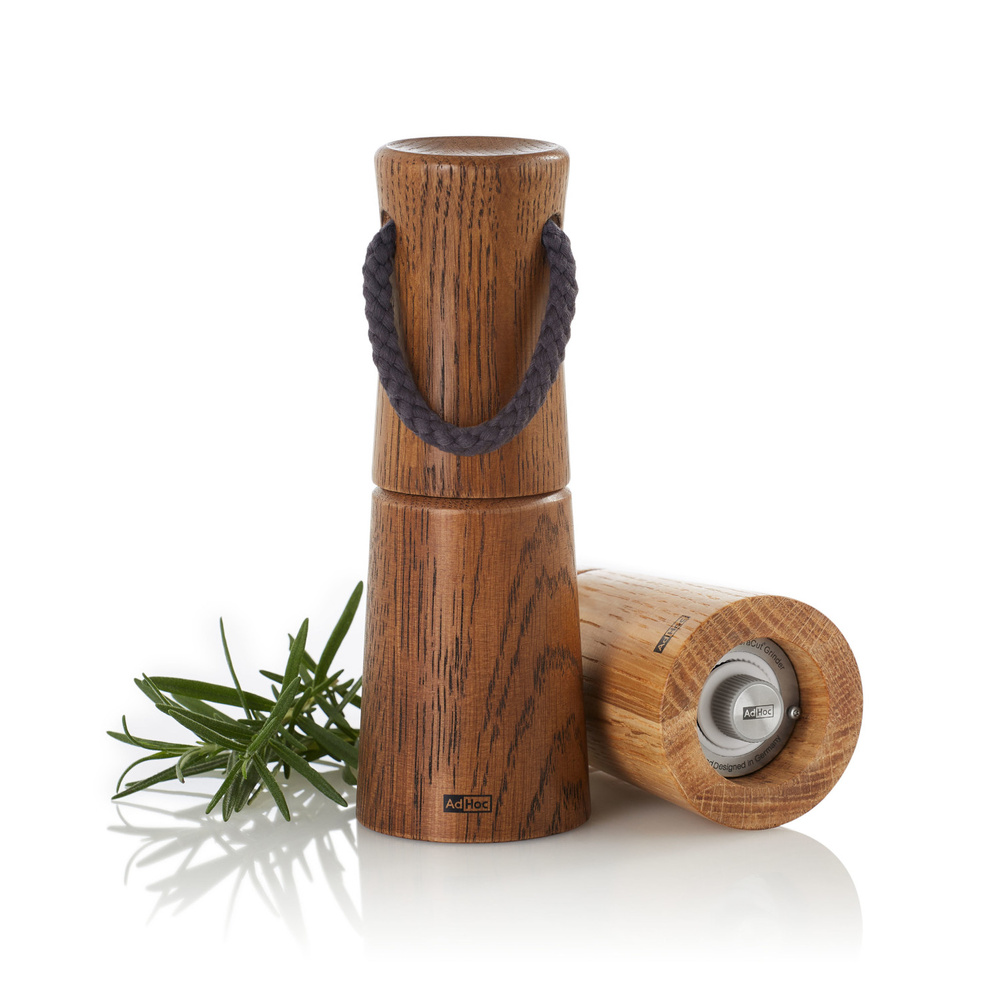 Młynek wykonany z olejowanego drewna dębowego, profilowana obudowa o zaokrąglonych krawędziach przyjemnie leży w dłoni. Bawełniany sznurek zamocowany w pokrywie młynka ułatwia przenoszenie. To udogodnienie docenią w szczególności miłośnicy ogrodowych przyjęć, czy pikników. Jak każdy młynek marki AdHoc, również i ten model, został wyposażony w ceramiczne żarna z płynną regulacją grubości mielenia o szerokim zakresie. Zastosowane w urządzeniu żarna CeraCut® są nie tylko wydajne, ale również odporne na korozję i zużycie. Żarna są obojętne na zapachy, co pozwala cieszyć się za każdym razem czystym smakiem zmielonych przypraw. Dzięki systemowi CAP otwieranie młynka jest łatwe, a napełnienie go przyprawami nie stanowi problemu. Wykorzystany w młynku system PreciseDrive równomiernie podaje przyprawy na żarna, zapewniając tym samym nieprzerwaną ciągłość mielenia aż do wyczerpania zasobnika. Młynek YASO dostępny jest w dwóch rozmiarach: 17cm i 20cm oraz dwóch wersjach drewna olejowanego jasnej i ciemnej. Aby napełnić młynek należy zdjąć górną część delikatnie zsuwając ją z trzpienia. Zaleca się unikać obracania żarnami podczas wykonywania tej czynności, aby nie doprowadzić do ich uszkodzenia. Po zdjęciu górnej części młynka możliwe jest napełnienie pojemnika na przyprawy. Nie zaleca się ubijania przyprawy wewnątrz pojemnika. Do swobodnego zamknięcia młynka niezbędne jest pozostawienie odpowiedniej ilości miejsca w pojemniku na przyprawy. Szczególną uwagę należy zwracać na czystość przypraw. Pewne zanieczyszczenia mogą doprowadzić do uszkodzenia żaren. Dolne pokrętło służy do regulacji grubości mielenia. W celu uzyskania bardziej rozdrobnionej przyprawy należy obracać pokrętłem zgodnie z ruchem wskazówek zegara, a gdy przyprawa powinna być zmielona grubiej należy obracać pokrętłem w przeciwnym kierunku do ruchu wskazówek zegara. Przed przystąpieniem do regulacji konieczne jest sprawdzenie czy pomiędzy żarnami nie zalega przyprawa, mogąca blokować regulację. Uwaga: Nigdy nie miel, jeżeli zbiornik na przyprawy jest pusty, może to doprowadzić do uszkodzenia żaren! Młynek należy czyścić wilgotną, miękka ściereczką. Nigdy nie należy młynka zanurzać w wodzie. Żarna można oczyścić delikatnie szczoteczką. Nie należy myć w zmywarce. Produkt został zaprojektowany przez Roberta Franzhelda. Materiały: naturalne olejowane drewno dębowe, bawełna. Opakowanie: kartonowe pudełko prezentowe.Bezpieczeństwo - rodzaj ostrzeżenia