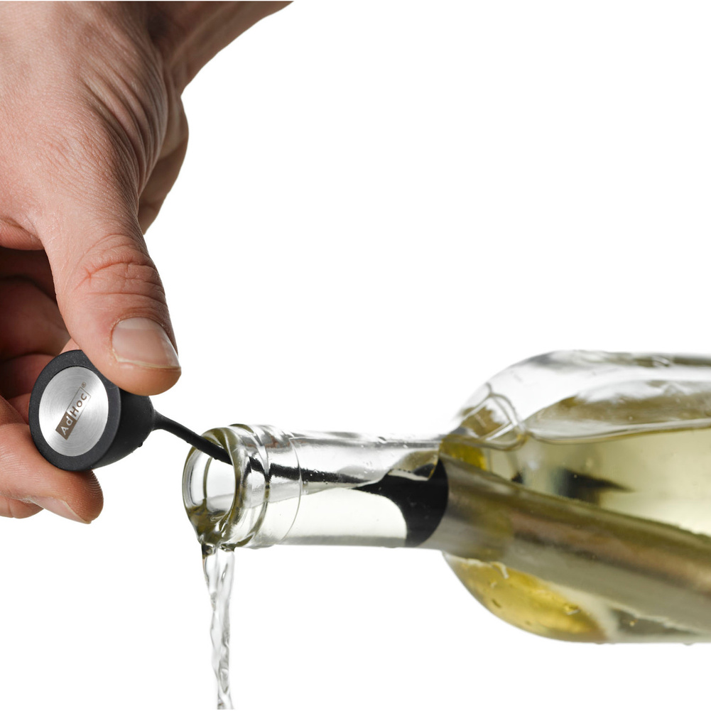 Icebar schładza napoje wewnątrz butelki nie rozwadniających ich. Jego głównym przeznaczeniem jest wino, ale możesz nim schłodzić dowolny napój. Silikonowy korek szczelnie zamyka butelkę, zapobiegając utlenianiu się wina co sprawia, że wino zachowa smak i świeżość na dłużej. Schładzacz radzimy przechowywać zamrażalce, w której musi spędzić co najmniej 2 godziny, aby mógł efektywnie schłodzić napój. Można go z łatwością umyć ręcznie. Nie należy myć w zmywarce! Produkt został zaprojektowany przez AdHoc Design Team. Materiały: stal nierdzewna, silikon. Opakowanie: kartonowe pudełko prezentowe.