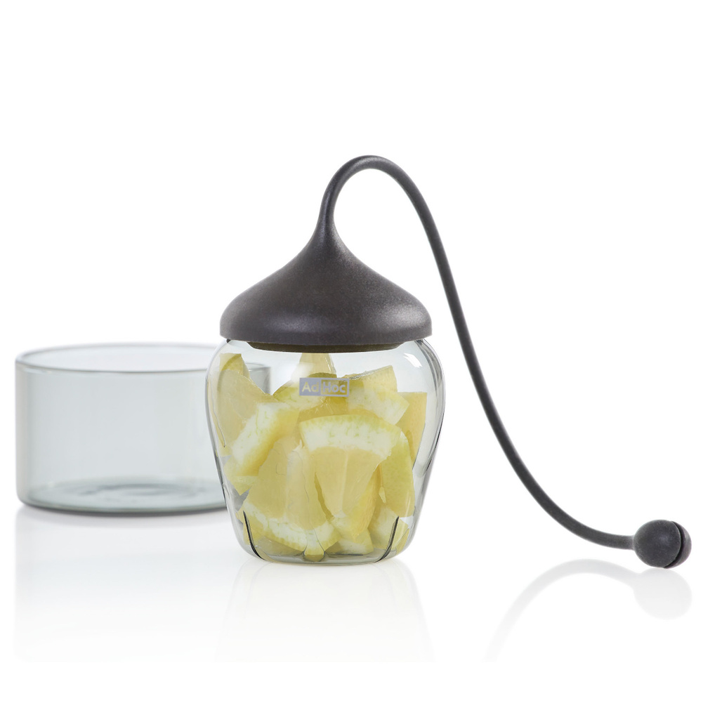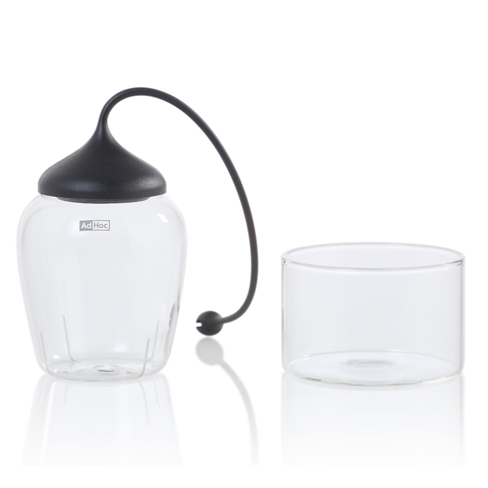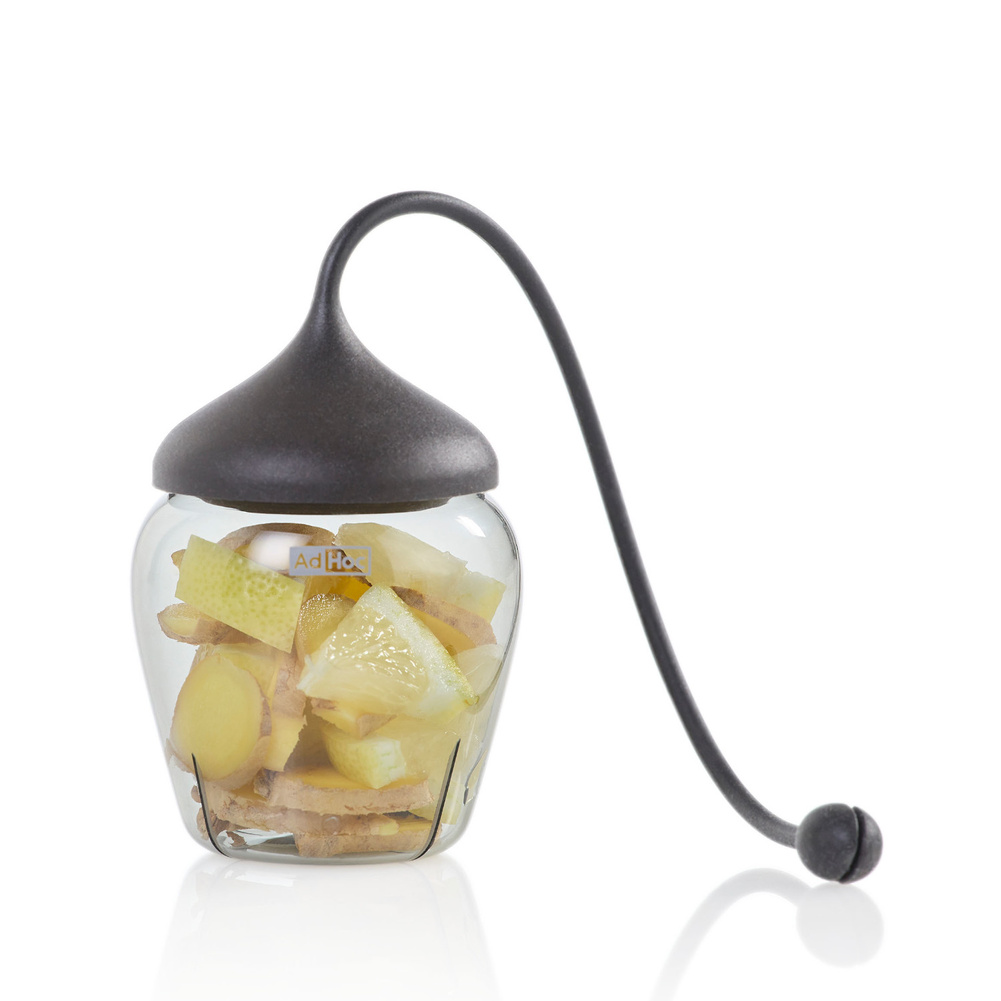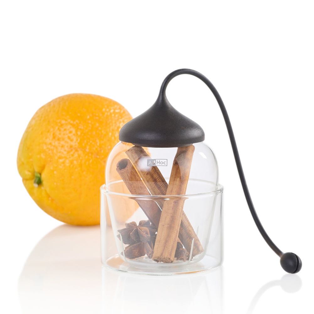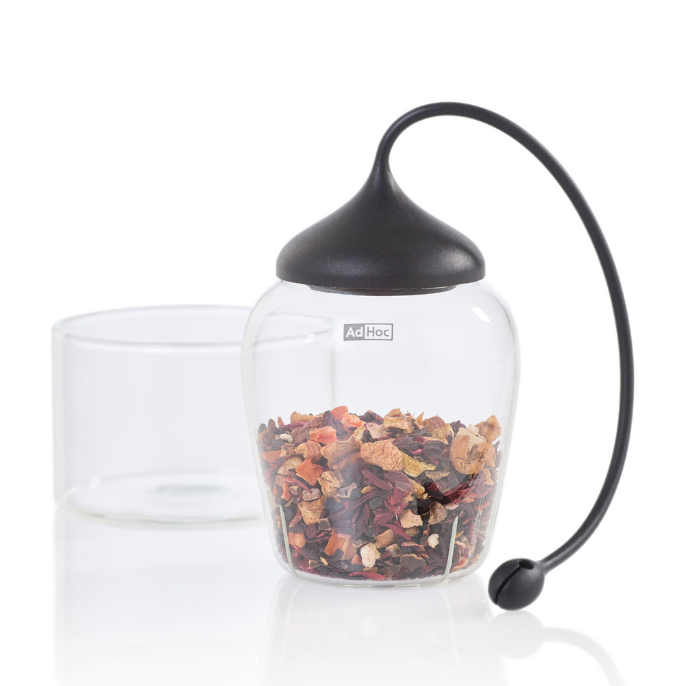 Wyjątkowo duży zaparzacz wykonany z odpornego na ciepło szkła borokrzemowego, które nie zmienia smaku naparu. Pojemność zaparzacza pozwala na optymalne rozwinięcie się nawet dużych liści herbaty oraz innych składników jak imbir czy cytryna. Za rozwinięcie bogatego aromatu naparu odpowiedzialne są podłużne nacięcia w pojemniku zaparzacza, który zamykany jest silikonowym kapturkiem ze smyczą o końcówce umożliwiającej umocowanie jej do brzegu naczynia. Aby napełnić, wystarczy ścisnąć silikonowy kapturek i go zdjąć. Pojemnik zaparzacza ma płaskie dno, dzięki czemu można go postawić na dnie naczynia. Całości dopełnia dołączona do zestawu szklana podstawka, służąca także jako miejsce do odstawienia zaparzacza. Produkt został zaprojektowany przez Rolanda Kreitera. Można myć w zmywarce. Uwaga: Przy otwieraniu zaparzacza nie należy ciągnąć za silikonową smycz! Materiały: żaroodporne szkło borokrzemowe, silikon. Przybliżone wymiary zaparzacza: średnica – 7cm, wysokość z silikonową zatyczką – 11,5cm. Wymiary podstawki: średnica – 7,7cm, wysokość – 5cm. Przybliżone wymiary brutto: wysokość - 13,5cm, długość - 11cm, szerokość - 10,2cm. Przybliżona waga brutto: 0,217kg. Opakowanie: kartonowe pudełko prezentowe.Bezpieczeństwo - rodzaj ostrzeżenia
