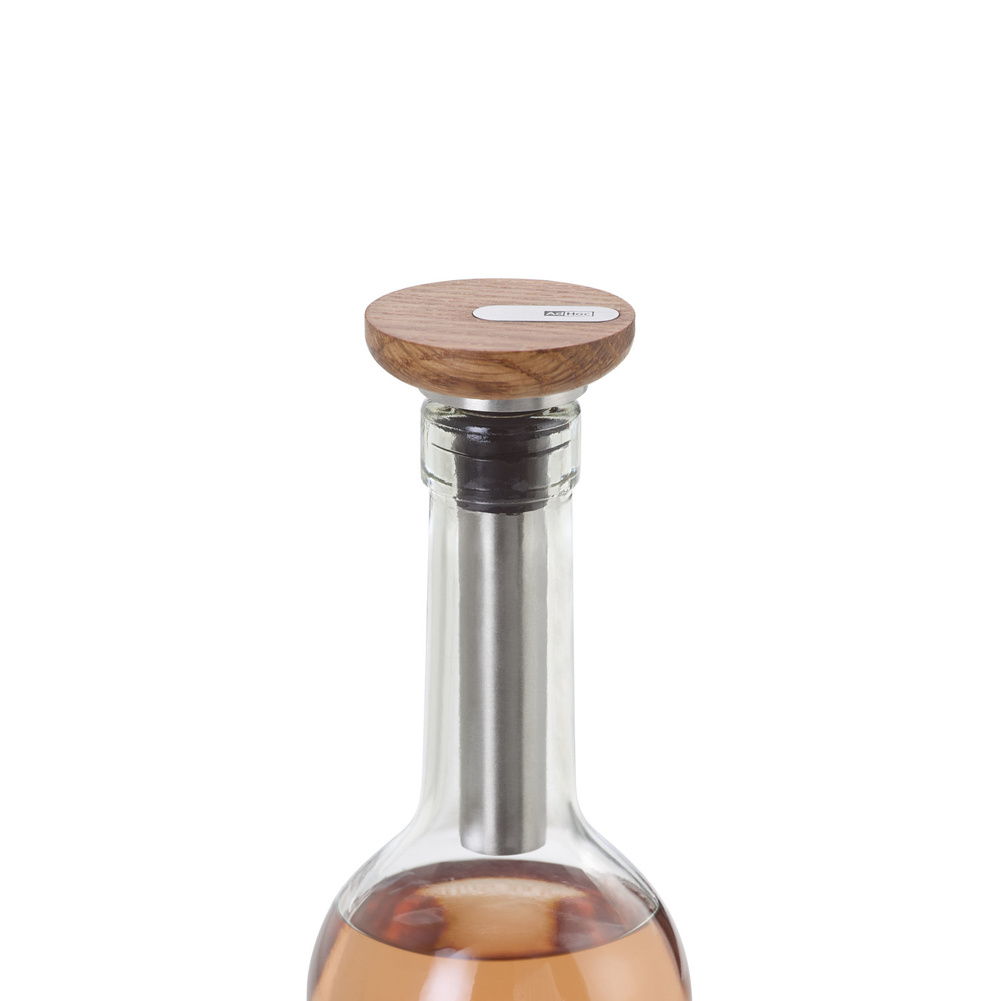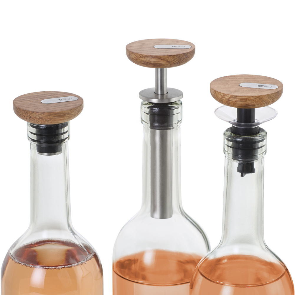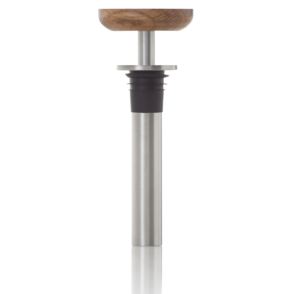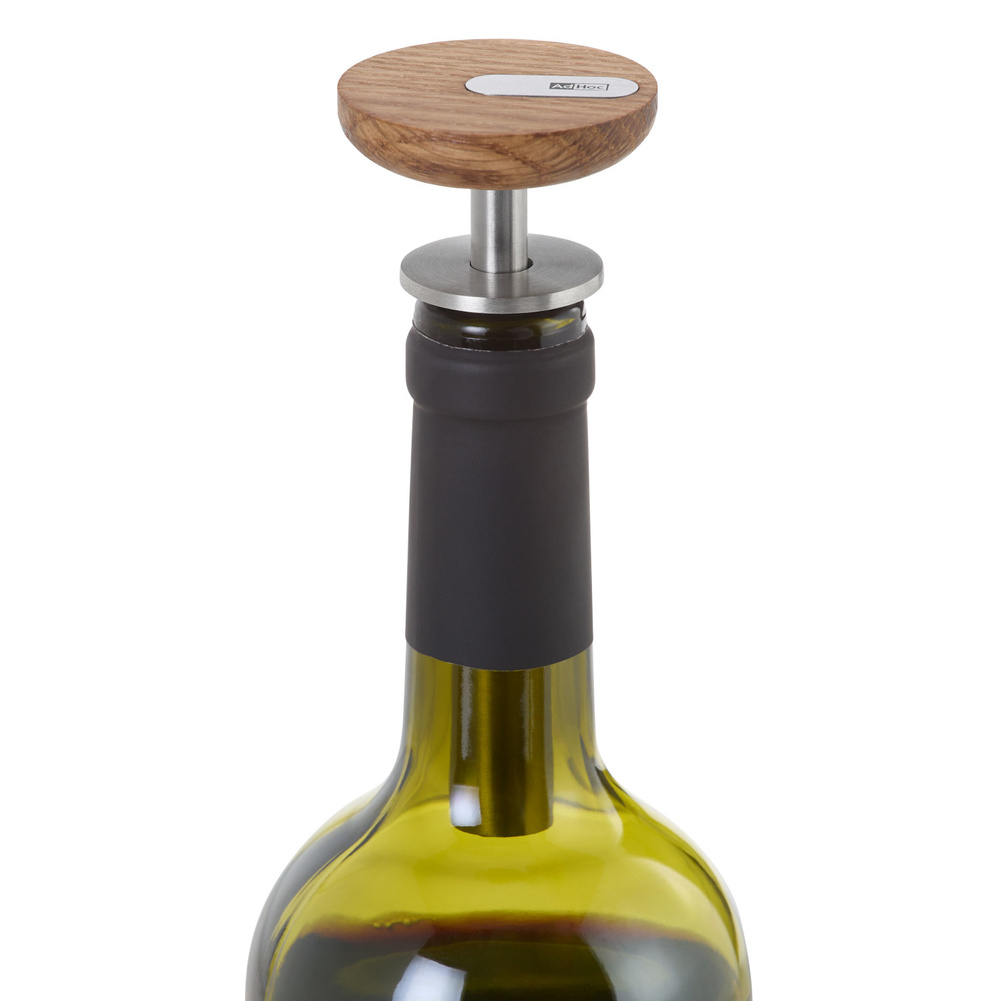 Pompka próżniowa do wina CasQ z dębową rączką, poprzez wypompowywanie powietrza z wnętrza butelki zatrzymuje się proces utleniania wina i zachowuje jego aromat. W celu wypompowania powietrza należy kilkukrotnie wykonać ruch tłokiem w górę i w dół. Jest niezwykle płaska, dzięki czemu świetnie nadaje się do przechowywania w drzwiach lodówki. Można ją dopasować do pozostałych produktów z kolekcji CasQ. Seria „CasQ” firmy AdHoc oferuje miłośnikom wina trzy praktyczne i atrakcyjne produkty do zamykania, nalewania i przechowywania ulubionego napoju. Świetnie sprawdzi się również jako prezent, idealnie z wybranym dobrym winem! Wysokiej jakości drewno dębowe, szczotkowana stal nierdzewna i silikon dopuszczony do kontaktu z żywnością sprawiają, że kolekcja do wina „CasQ” jest wyjątkowa. Produkt został zaprojektowany przez Roberta Franzhelda. Materiał: drewno dąb, stal nierdzewna, silikon. Przybliżone wymiary: średnica - 4,9cm, wysokość - 10,5cm. Przybliżone wymiary brutto: wysokość - 11,2cm, długość - 5,5cm, szerokość - 5,5cm. Przybliżona waga brutto: 0,092kg. Opakowanie: kartonowe pudełko prezentowe.Bezpieczeństwo - rodzaj ostrzeżenia
