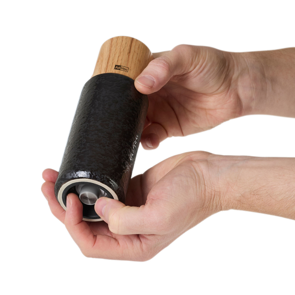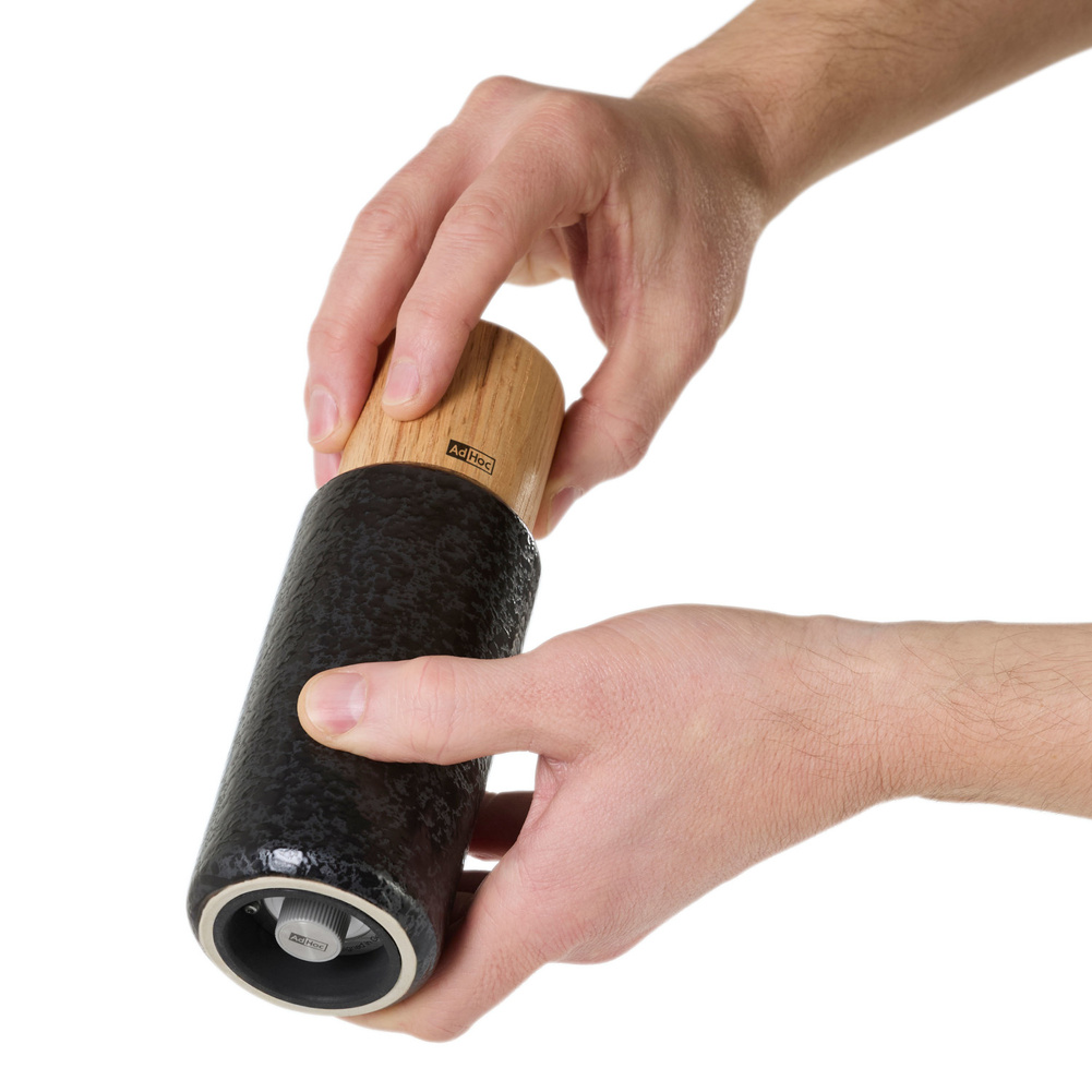 Młynek Yara został wykonany z ceramiki oraz drewna dębu. Młynki Yara są wytwarzane ręcznie, dzięki czemu każdy z nich jest unikalny. Pokryte oryginalną strukturą ceramiczną stanowią ciekawy i przyciągający wzrok element wyposażenia kuchni. Ceramiczne żarna osadzone na trzpieniu ze stali nierdzewnej, charakteryzują się odpornością na korozję i nie przenoszą smaków oraz zapachów, dzięki czemu smak przypraw pozostaje zawsze nieskazitelny. Zaś szeroki zakres regulacji grubości mielenia za każdym razem pozwala na uzyskanie zamierzonego efektu. Młynek posiada system Precise Drive efektywnie koncentrujący przyprawę na żarnach, co zapewnia ciągłe mielenie od pierwszego do ostatniego ziarenka. A gdy przyprawa się wyczerpie, wystarczy zdjąć górną część młynka i napełnić pojemnik na przyprawy. Młynek został zaprojektowany przez Roberta Franzhelda. Pamiętaj! Zawsze podnoś młynek chwytając za ceramiczny korpus, nigdy za drewnianą zatyczkę! Nie należy myć w zmywarce. Materiał: ceramika, drewno czerwonego dębu. Przybliżone wymiary pojedynczego młynka: wysokość - 18cm, średnica - 6,2cm. Przybliżone wymiary brutto: wysokość - 19,2cm, długość - 7cm, szerokość - 7cm. Przybliżona waga brutto: 0,605kg. Opakowanie: kartonowe pudełko prezentowe.Bezpieczeństwo - rodzaj ostrzeżenia