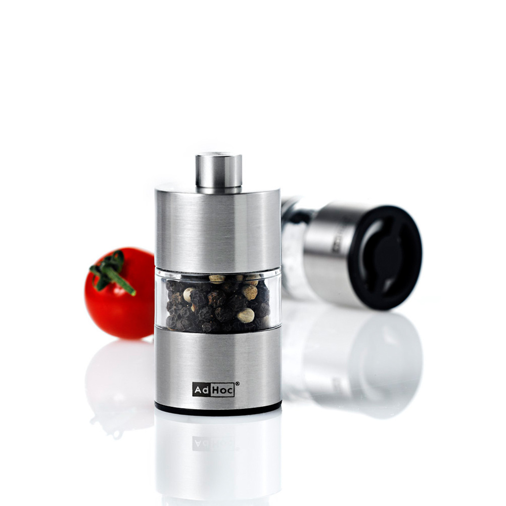Młynek posiada bardzo wydajne w pełni regulowane żarna CeraCut®. Żarna CeraCut® są nie tylko wydajne, odporne na korozję i zużycie, ale przede wszystkim nie chłoną zapachów. Akrylowy pojemnik na przyprawy pozwala obserwować poziom ich zużycia. Bardzo mały, kompaktowy rozmiar młynka czyni go idealnym kompanem podróży. Produkt został zaprojektowany przez AdHoc Design Team. Aby napełnić młynek należy odkręcić górną śrubę, a następnie zdjąć metalowy element. Następnie napełniamy przyprawą. Nigdy nie ubijaj wsypanych przypraw, aby wsypać więcej. Pozostaw przestrzeń na górze pojemnika, aby móc swobodnie go zamknąć. Zwracaj uwagę na jakość przypraw, szczególnie czy nie są zanieczyszczone. Górna śruba służy też do regulacji jeśli chcemy bardziej rozdrobnić należy przekręcić śrubę mocującą zgodnie ze wskazówkami zegara, a jeśli chcemy większe kawałki to przekręcamy w przeciwnym kierunku do ruchu wskazówek zegara. Przed przystąpieniem do regulacji upewnij się, że żarna są czyste i nie ma zakleszczonych kawałków przypraw. Uwaga: Nigdy nie miel, jeżeli zbiornik na przyprawy jest pusty, może to doprowadzić do uszkodzenia żaren! Nie należy myć w zmywarce. Czyścimy lekko wilgotną, miękka ściereczką. Nigdy nie należy młynka zanurzać w wodzie. Żarna można oczyścić delikatnie szczoteczką. Materiał: stal nierdzewna, akryl. Przybliżone wymiary: wysokość - 6,2cm, średnica - 3,2cm. Przybliżone wymiary brutto: wysokość - 7cm, długość - 3,8cm, szerokość - 3,8cm. Przybliżona waga brutto: 0,083kg. Opakowanie: kartonowe pudełko prezentowe.Bezpieczeństwo - rodzaj ostrzeżenia