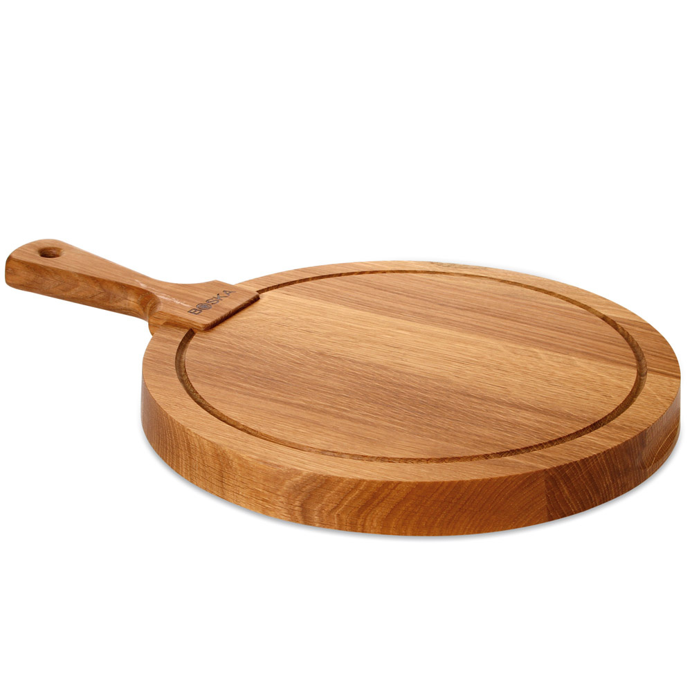 Deska do serwowania serów solidna jak dąb, z którego ją wykonano! Deska okrągła z rączką do serwowania sera Friends M, to połączenie piękna naturalnego drewna dębowego z jego wytrzymałością. Deska została specjalnie zaprojektowania do podawania serów. Grubość deski to aż 3 cm, z przodu deski znajduje się wgłębienie, które ułatwia jej przenoszenie. Na spodniej stronie deski umieszczono 5 silikonowy nóżek. Idealnie nadaje się na spotkania rodzinne i imprezy dostojnie prezentując sery. Przed pierwszym użyciem deskę należy solidnie naoliwić, pozwolić by drewno chłonęło olej przez kilka dni. Potem czynność należy powtarzać co jakiś czas. Deskę myjemy ręcznie z dodatkiem łagodnych detergentów. Przybliżone wymiary deski : średnica całej deski 41,5 cm, średnica bez rączki 29 cm, średnica deski za żłobieniem 24,7 cm grubość 3 cm Przybliżone wymiary brutto: wysokość 41,5 cm, długość 29 cm, szerokość 3 cm Przybliżona waga brutto: 1,55 kg Opakowanie: brak