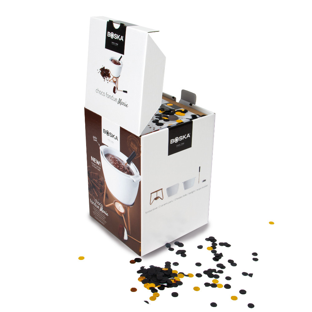Zaskocz swoich znajomych i rodzinę przyrządzając czekoladowe fondue ze stylowym zestawem Marie z Boski. Pozwól im wybierać spośród różnych dodatków takich jak owoce, pianki, herbatniki, kawałki ciasta i inne. Ten wyjątkowy czekoladowy zestaw do fondue wykreuje prawdziwy klimat na każdej imprezie.