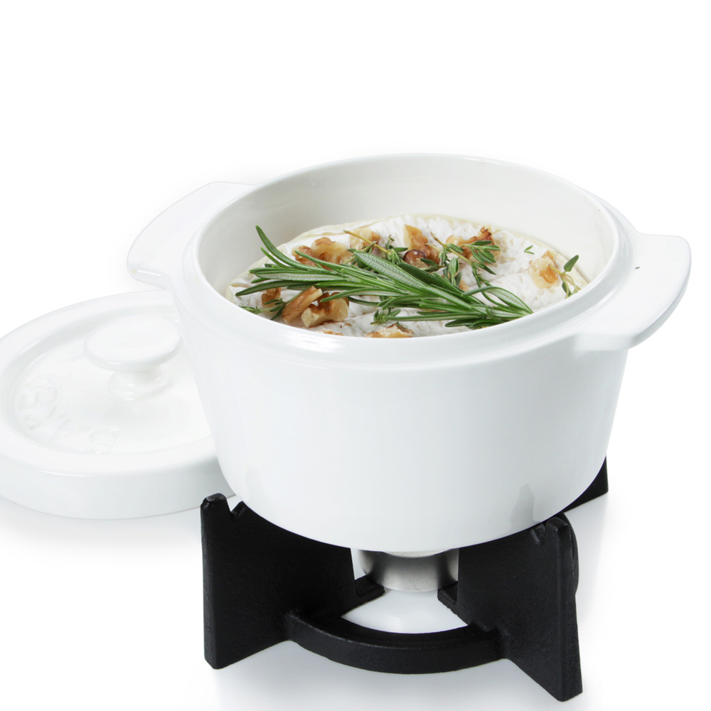 W Cheese Baker z porcelany można przygotować mini fondue z serem lub błyskawicznie upiec Camembert. Możesz też łatwo utrzymać stopiony ser ogrzewając go podgrzewaczem w podstawie, co oznacza, że przez długi czas będziesz delektować się kremowym, ciągnącym serem!