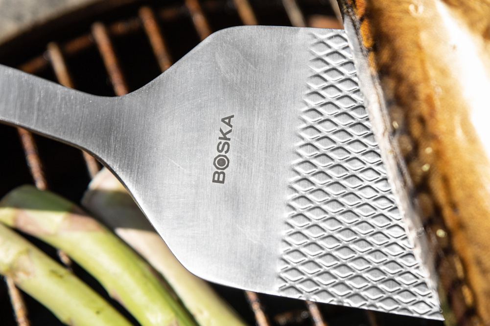 Łopatka do BBQ jest wykonana w 100% ze stali nierdzewnej, ma antypoślizgowy, diamentowy wzór zapewniający pewny chwyt przy obracaniu, wkładaniu i zdejmowaniu potraw z grilla. Dołączony hak w kształcie litery S ułatwi przechowywanie. Łopatka BBQ służy do obracania burgerów i innych płaskich potraw podczas grillowania. Dzięki płaskiej, zaokrąglonej krawędzi z łatwością wsuniesz ją pod każdy rodzaj grillowanego jedzenia. A długa rączka zapewni Ci bezpieczny dystans. Narzędzie można myć w zmywarce, ale po zakończeniu cyklu należy je natychmiast wyjąć i osuszyć jak każdą stal. Przybliżone wymiary: wysokość - 4cm, długość - 44,5cm, szerokość - 9cm. Przybliżone wymiary brutto: wysokość - 4cm, długość - 44,5cm, szerokość - 9cm. Przybliżona waga brutto: 0,222kg. Opakowanie: tekturowa zawieszka na rzemieniu.