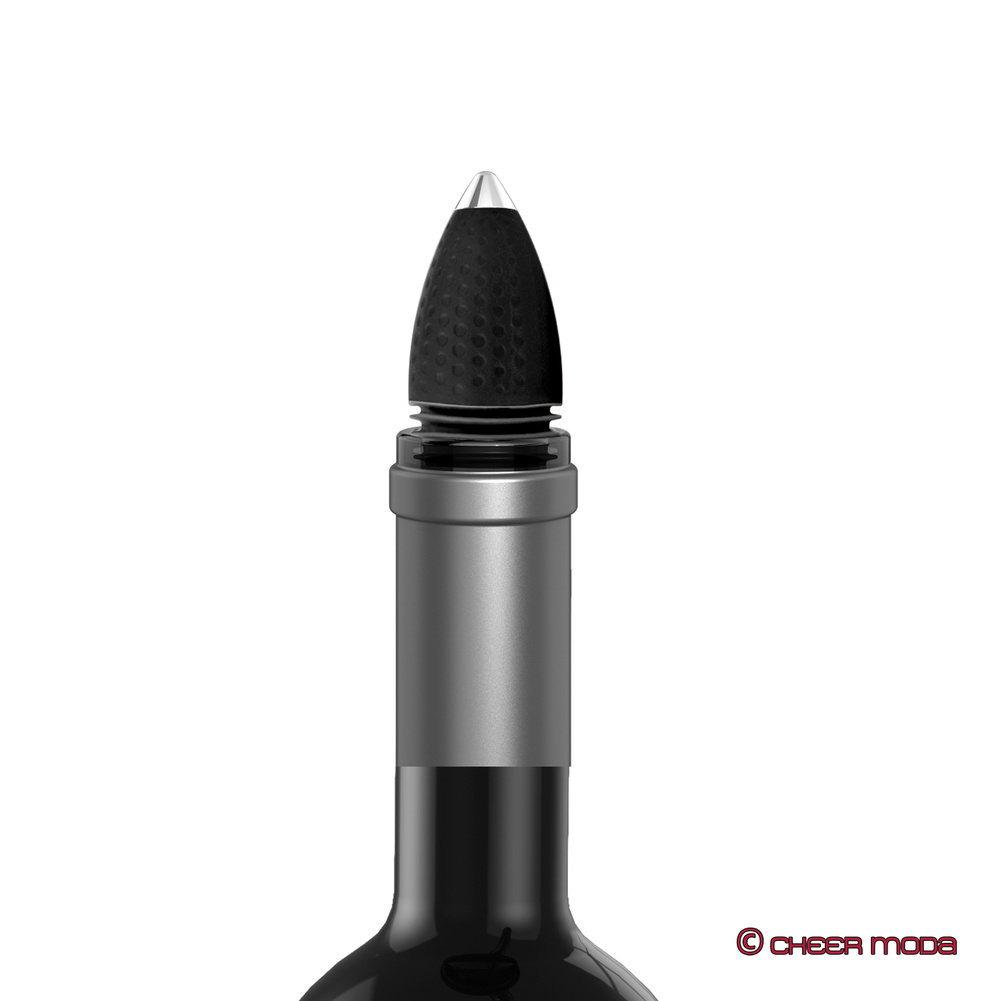 Korek zabezpieczający wino przed nadmiernym napowietrzeniem poprzez szczelne zamknięcie butelki. Jego kształt pozwala z łatwością się nim posługiwać. Materiał: ABS, stal nierdzewna. Opakowanie: kartonowe pudełko prezentowe.Bezpieczeństwo - rodzaj ostrzeżenia