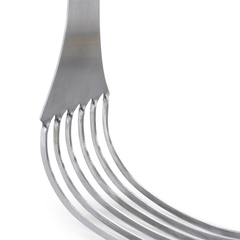Ten siekacz do ciast zawiera sześć solidnych ostrzy i duży uchwyt dla uzyskania najwyższej wydajności podczas mieszania masła z suchymi składnikami. • Rozszerzone ostrza pokrywają większą powierzchnię i zwiększają wydajność siekania. • Profesjonalna, wytrzymała, gruba konstrukcja ze stali nierdzewnej zapewnia trwałość i siłę nacisku. • Łatwy do czyszczenia, ponieważ składniki nie pozostają między ostrzami. • Powiększona, antypoślizgowa rączka zapewnia stabilny chwyt i precyzję. • Można myć w zmywarce.