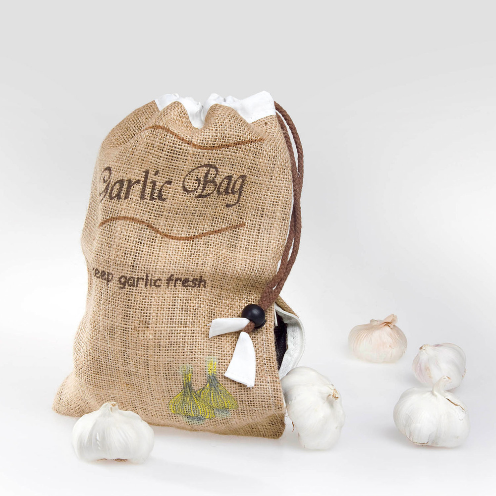 Przewiewna torba do przechowywania czosnku, która chroni przed światłem. Została wykonana z lnu, jej wnętrze jest zaś pokryte przepuszczającą powietrze włókniną. Wyposażona jest w sznurek do ściągania na górze oraz w suwak błyskawiczny na boku u spodu, umożliwiający wyjmowanie warzyw.Bezpieczeństwo - rodzaj ostrzeżenia