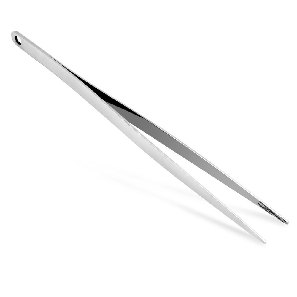 Szczypce ze stali nierdzewnej, które umożliwiają chwytanie jedzenia podczas gotowania bez poparzenia się. Świetnie sprawdzi się także przy grillowaniu i przewracaniu cienkich plasterków bez uszkadzania ich. Można myć w zmywarce. Produkt może nosić ślady produkcyjne, które w żaden sposób nie wpływają na jego walory użytkowe. Materiał: stal nierdzewna. Wymiary brutto: 34x8x1,5cm. Wymiary netto: 29,8x2,7x1,6cm. Waga brutto: 0,124kg. Waga netto: 0,106kg.Bezpieczeństwo - rodzaj ostrzeżenia