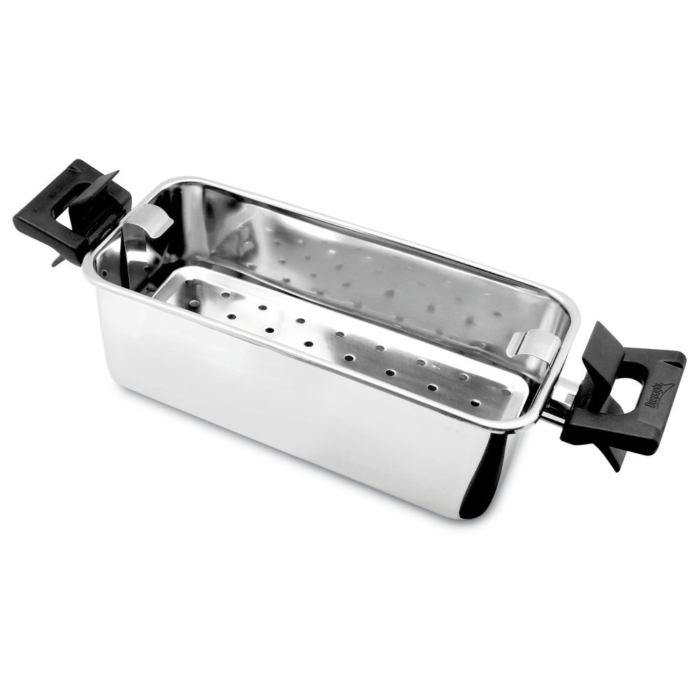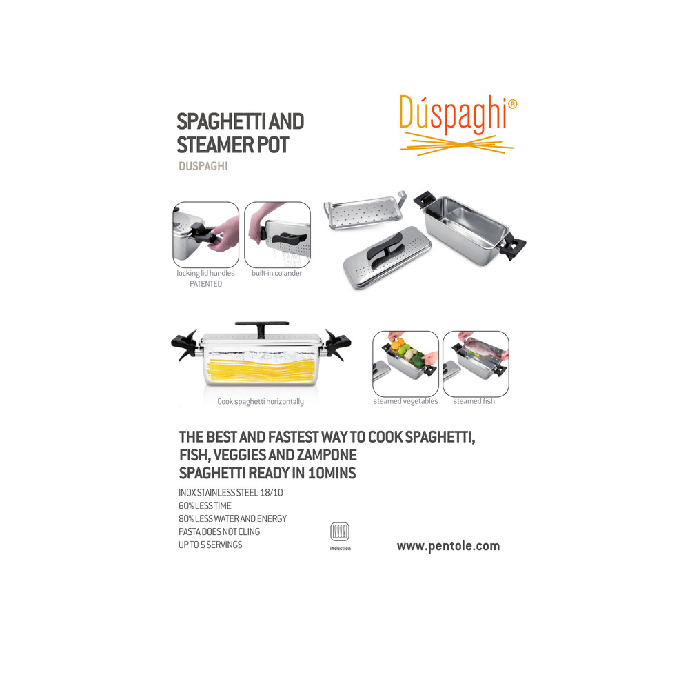 Gotując spaghetti w tym podłużnym garnku oszczędzasz wodę, energię i czas. Uchwyt został zaprojektowany tak, że z łatwością, bezpiecznie odlejesz wodę przez dziurki w pokrywie bez rękawic i dodatkowych gadżetów do odcedzania. W naczyniu przyrządzisz zdrowe i smaczne potrawy na parze. Smażenie, pieczenie i grillowanie mogą nawet do 30% obniżać zawartość witaminy B. Gotowanie na parze warzyw, ryb zatrzymuje soki w potrawie, zachowując większość wartości odżywczych. Dzięki wkładce bez problemu wyjmiesz przygotowane potrawy w całości, które będą nie tylko rewelacyjnie smakować, ale też wyglądać. Podłużny garnek z pokrywą oraz wkładka wykonane są ze stali nierdzewnej, uchwyt z tworzywa. Podczas gotowania na parze upewnij się, że woda jest poniżej wkładki. Para nie powinna być zbyt intensywna, ponieważ skóra, tuszka może pęknąć. Aby zapobiec przywieraniu zalecamy stosowanie papieru do pieczenia. Zaleca się myć ręcznie przy użyciu łagodnego detergentu, po umyciu należy dokładnie osuszyć naczynie. Opakowanie: karton.Bezpieczeństwo - rodzaj ostrzeżenia