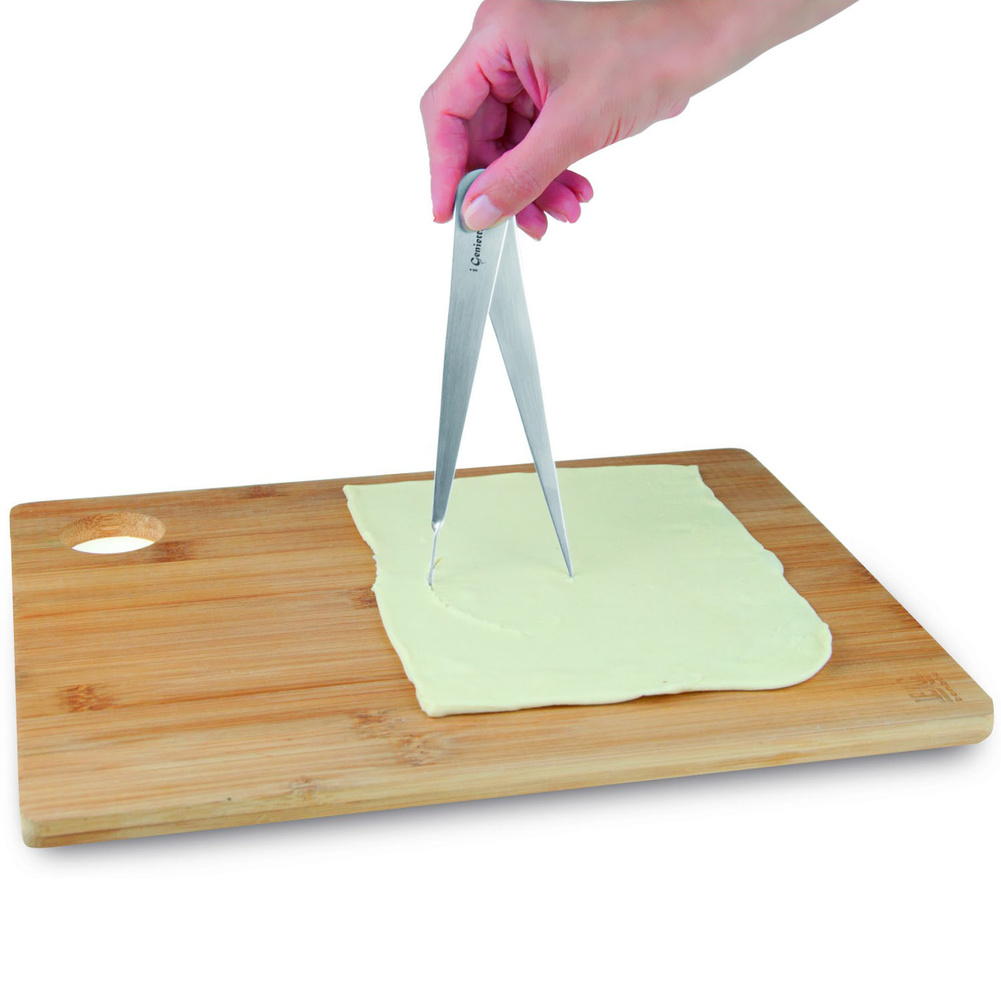 Cyrkiel ze stali nierdzewnej zaprojektowany do wycinania kół z ciasta o różnych średnicach. Wystarczy po prostu dopasować ramiona cyrkla do zakładanej średnicy koła, jaką chce się uzyskać. Świetnie sprawdzi się w wycinaniu kół z ciast kruchego i francuskiego. Można myć w zmywarce. Materiał: stal nierdzewna. Wymiary brutto: 19,5x8x0,8cm. Wymiary netto: 15x0,7x2cm. Waga brutto: 0,063kg. Waga netto: 0,047kg.Bezpieczeństwo - rodzaj ostrzeżenia