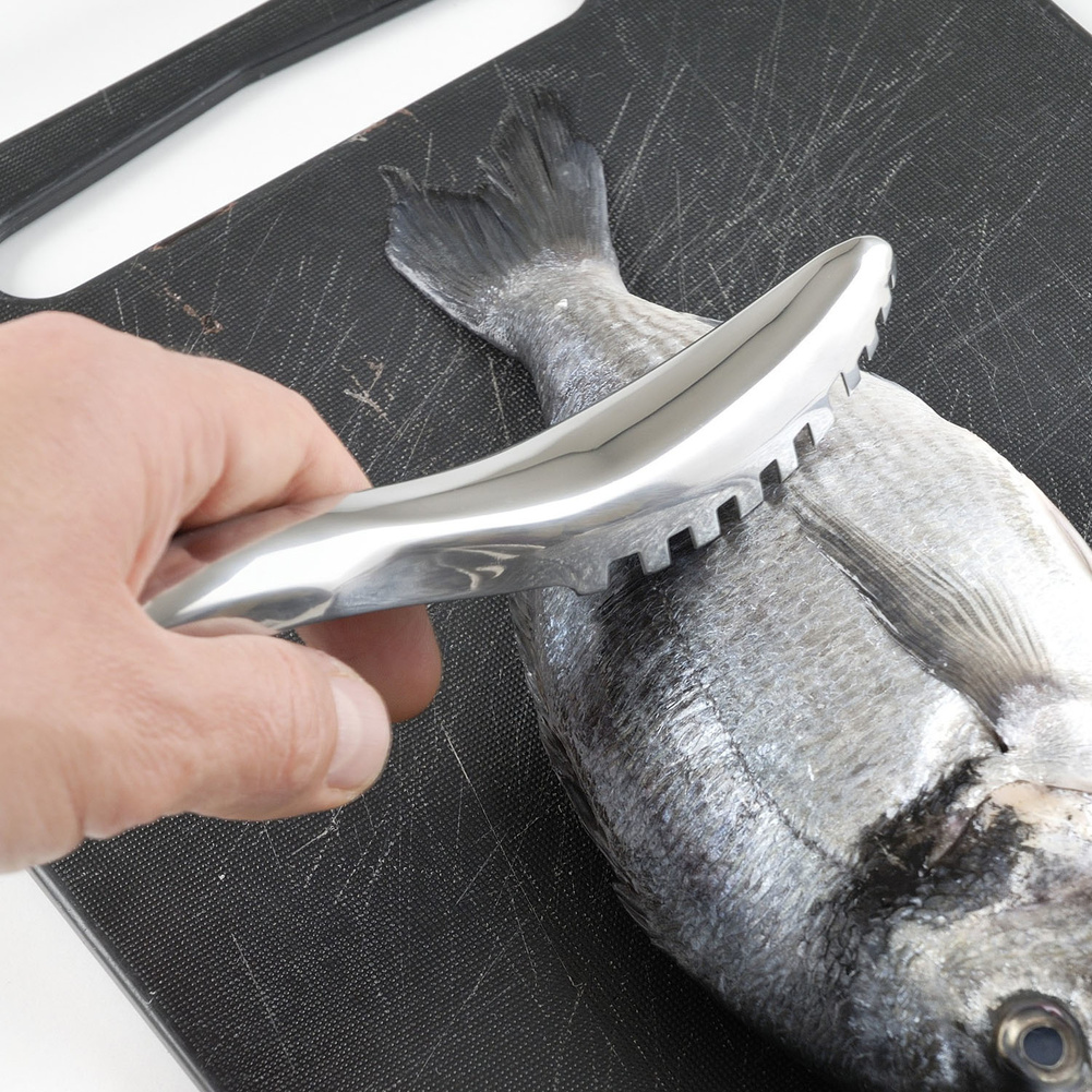 Łatwy I bezpieczny w użyciu. Wystarczy, że złapiesz go jak szczotkę i trzyj rybę aż do usunięcia ostatniej łuski. Można myć w zmywarce. Produkt może nosić ślady produkcyjne, które w żaden sposób nie wpływają na jego walory użytkowe. Materiał: stal nierdzewna. Wymiary brutto: 24x7x3cm. Wymiary netto: 19x2,8x3,8cm. Waga brutto: 0,048kg. Waga netto: 0,036kg.