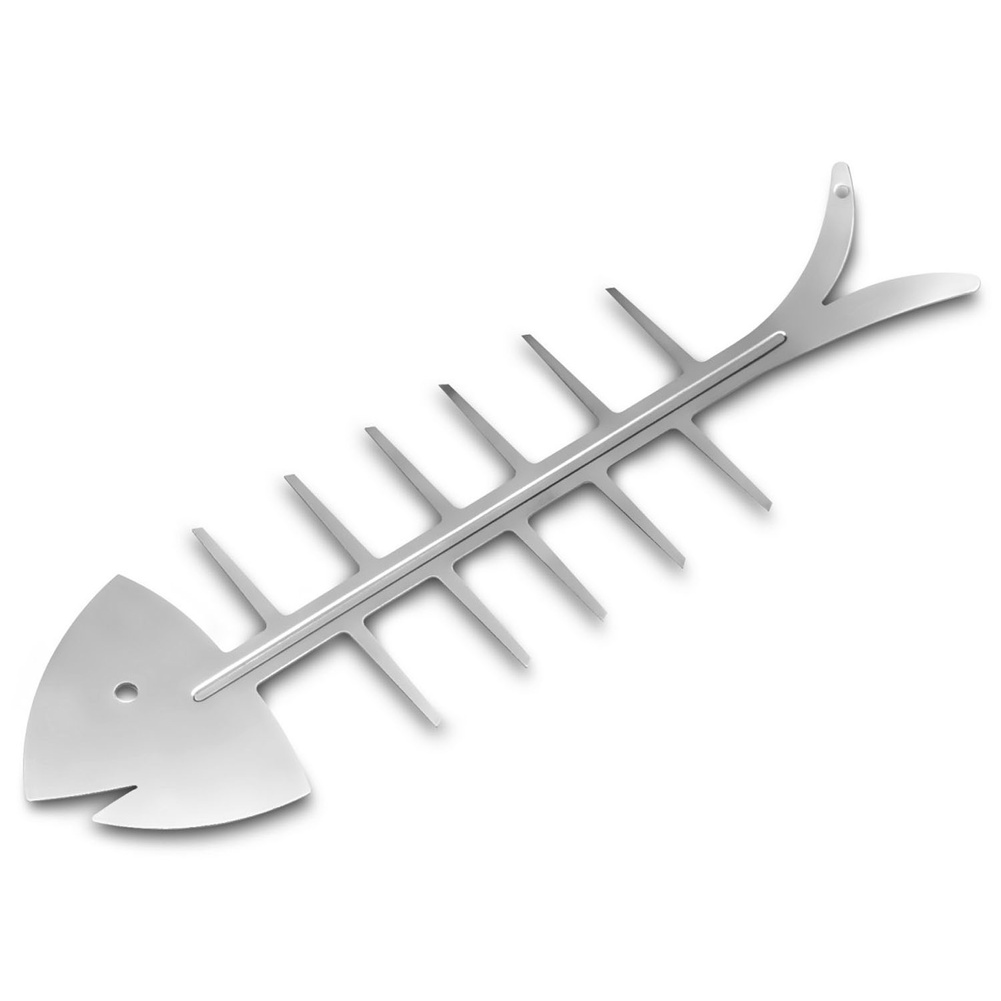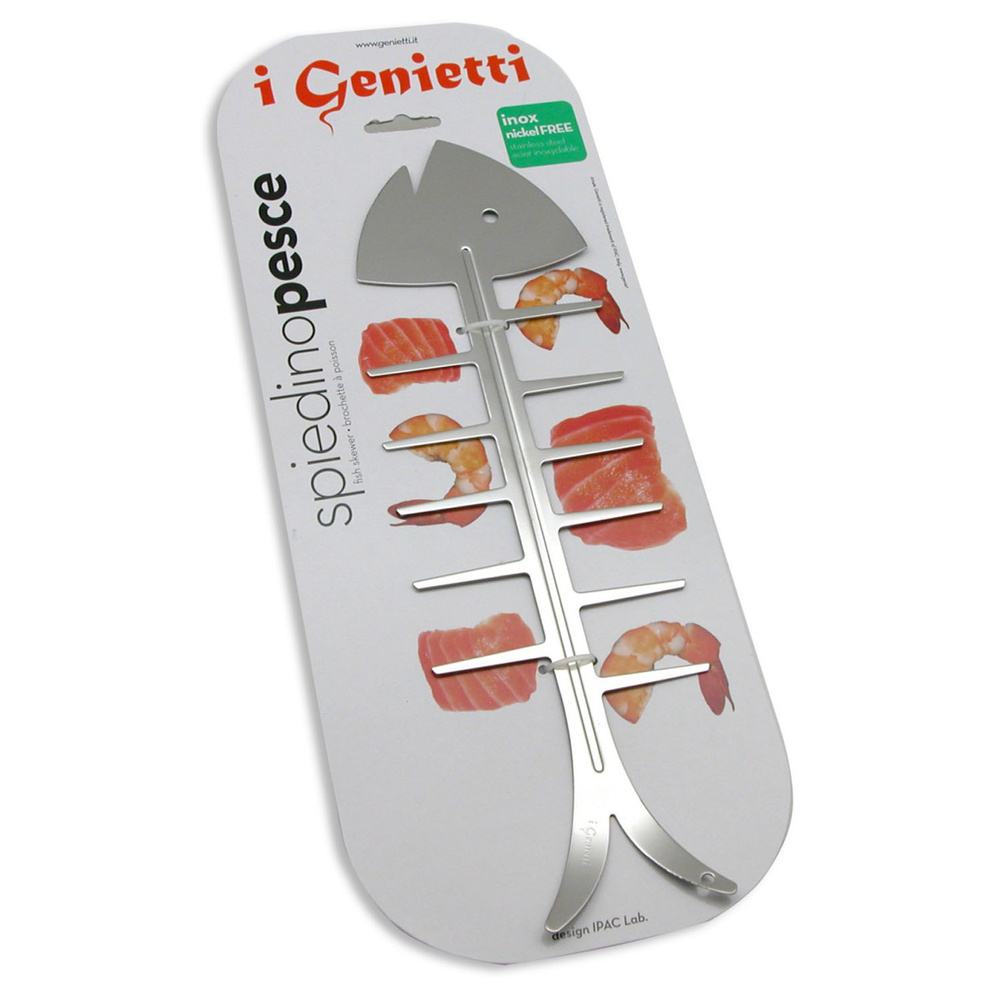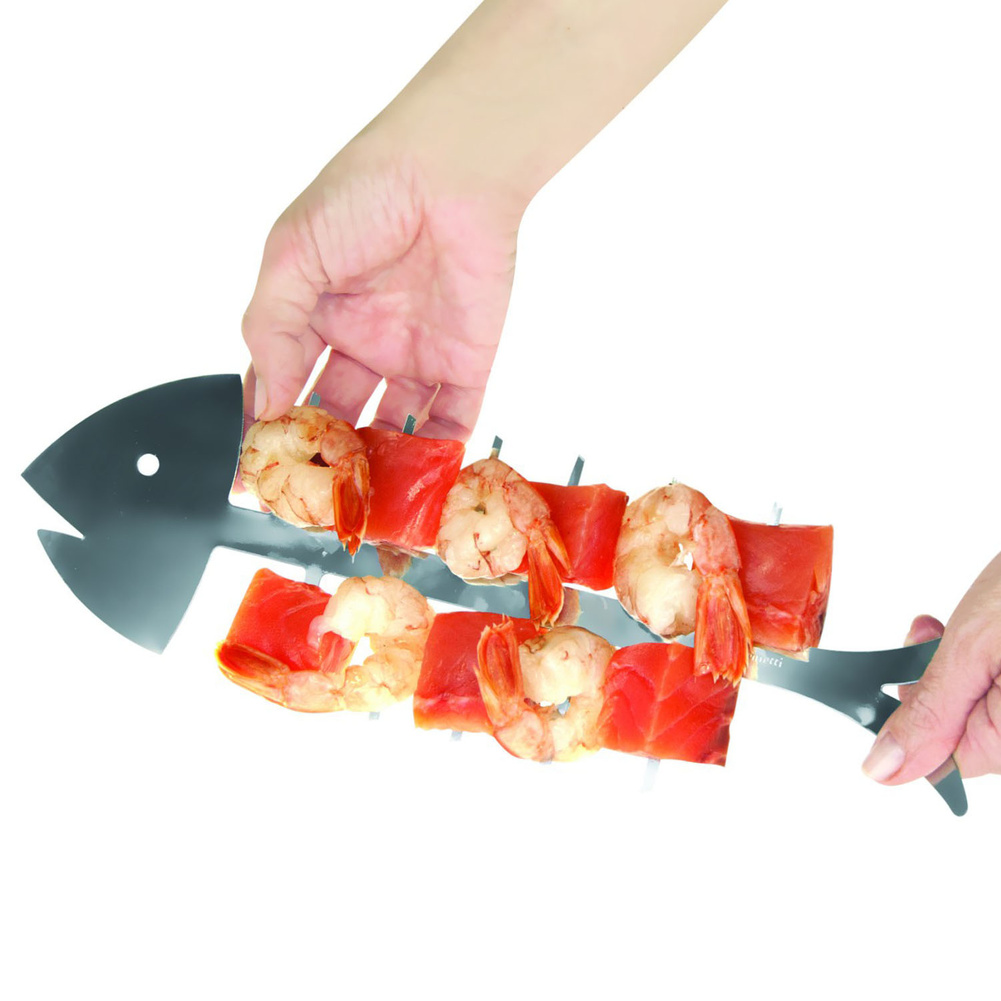Nadziewacz ze stali nierdzewnej w kształcie ryby do serwowania grillowanej ryby w oryginalny sposób. Dzięki płaskiej i rozłożystej konstrukcji zachowuje się stabilnie podczas grillowania oraz zapewnia równe smażenie wszystkich kawałków mięsa i łatwiejsze ich zdejmowanie z nadziewacza. Zakrzywiony ogon pozwala na bezpieczny chwyt zarówno podczas gotowania i serwowania: idealny do grilla i piekarnika, do wszystkich ryb – łososia, tuńczyka, krewetek czy kałamarnicy. Wielokrotnego użytku, higieniczny i łatwy w czyszczeniu. Można myć w zmywarce. Produkt może nosić ślady produkcyjne, które w żaden sposób nie wpływają na jego walory użytkowe. Materiał: stal nierdzewna. Wymiary brutto: 33,8x13x1,5cm. Wymiary netto: 29,7x9x1,4cm. Waga brutto: 0,098kg. Waga netto: 0,080kg.Bezpieczeństwo - rodzaj ostrzeżenia