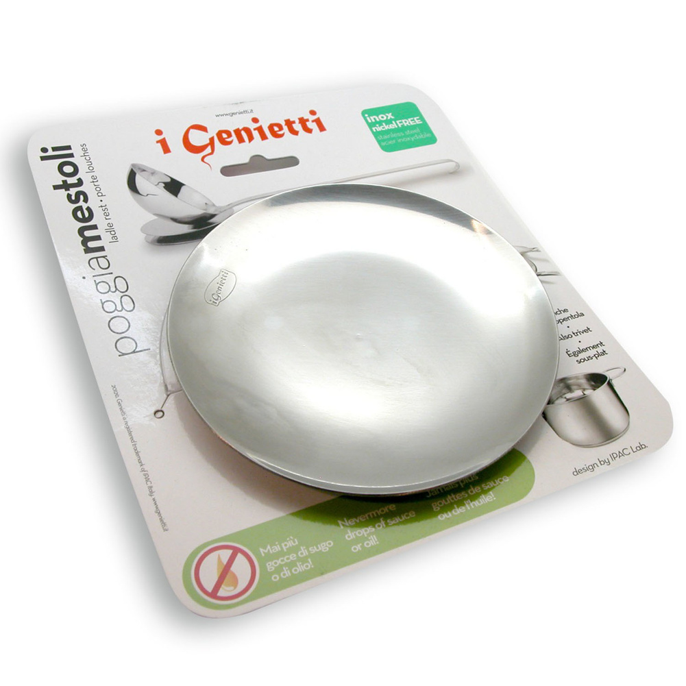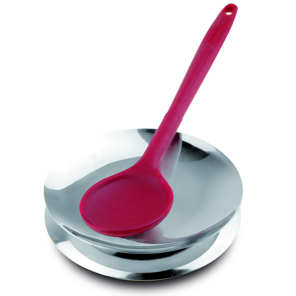 Designerski produkt ze stali nierdzewnej będący podkładką pod chochlę, łyżki, czy widelce, które już nie pochlapią Twojego blatu. Można wykorzystać ją również na stole jako podkładkę pod chochlę po nalaniu zupy, bądź jako podstawkę pod garnek. Można myć w zmywarce. Produkt może nosić ślady produkcyjne, które w żaden sposób nie wpływają na jego walory użytkowe. Materiał: stal nierdzewna. Wymiary brutto: 19x16x2,1cm. Wymiary netto: 12x12x2,1cm. Waga brutto: 0,195kg. Waga netto: 0,180kg.
