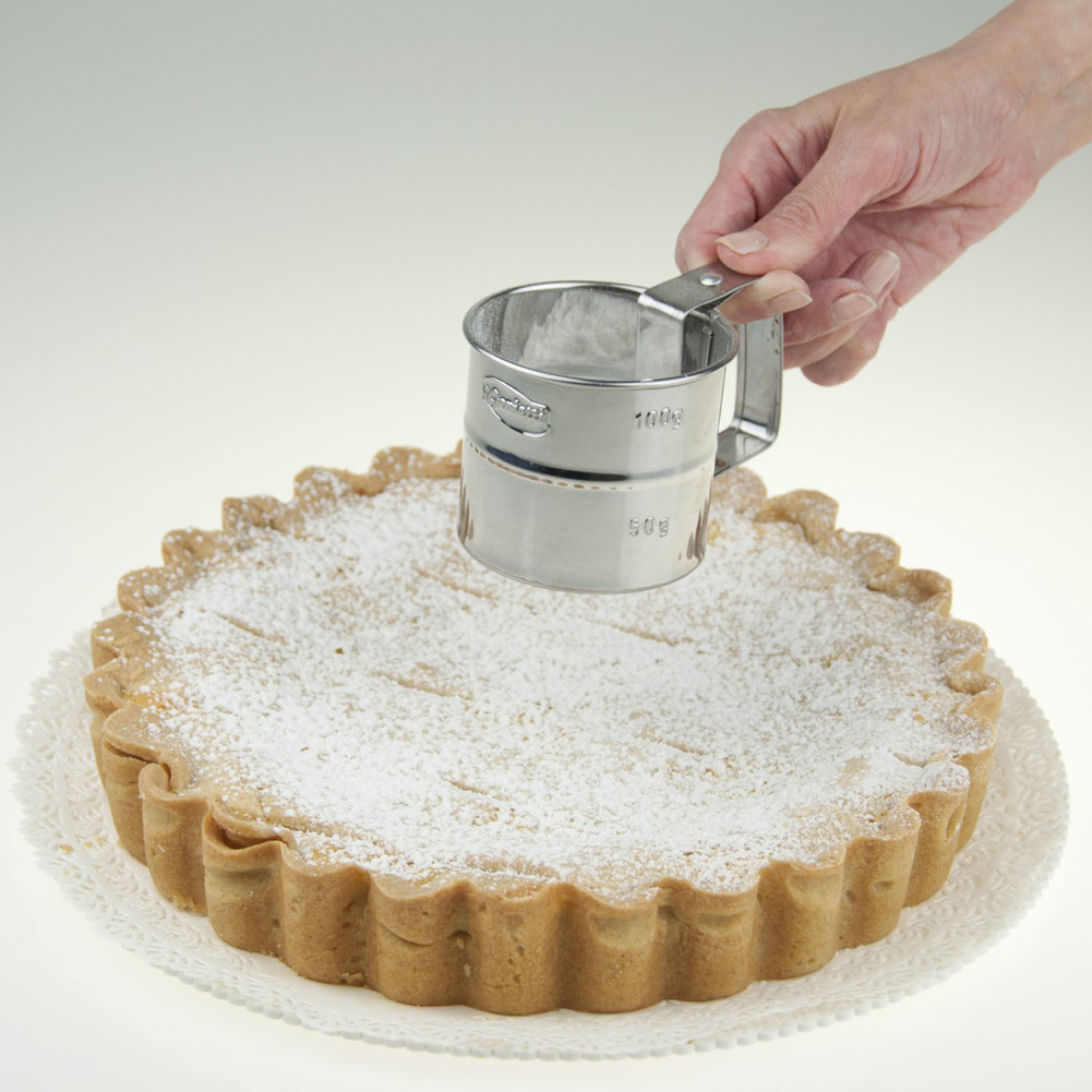 Mini sitko ze stali nierdzewnej do równomiernego rozprowadzania cukru pudru, kakao, przypraw, mąki. Można przy jego pomocy obsypać biszkopty, ciastka, ciasta, lody czy cappuccino. Można myć w zmywarce. Produkt może nosić ślady produkcyjne, które w żaden sposób nie wpływają na jego walory użytkowe. Materiał: stal nierdzewna. Wymiary netto: 7x5,8x10cm. Waga brutto: 0,048kg. Waga netto: 0,046kg.Bezpieczeństwo - rodzaj ostrzeżenia