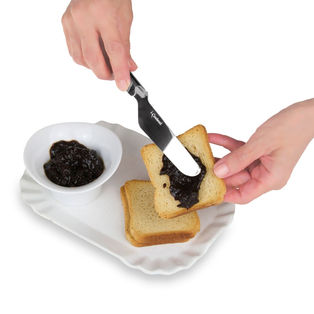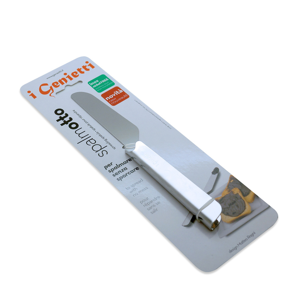 Specjalnie ukształtowana rękojeść trzyma z dala od blatu ostrze do smarowania. Nożykiem rozsmarujesz masło, dżem, czekoladę i kremy a odłożony właściwą stroną sprawi, że Twój blat pozostanie czysty. Materiał: stal nierdzewna. Można myć w zmywarce. Opakowanie: tekturowa zawieszka.Bezpieczeństwo - rodzaj ostrzeżenia