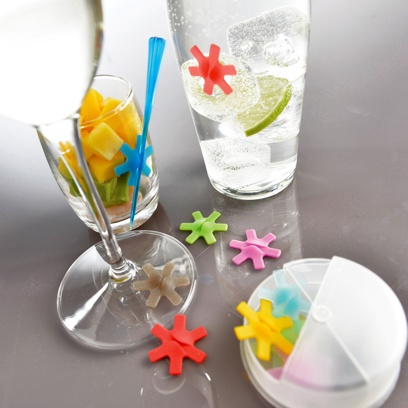 Znaczniki wykonane z silikonu. Sprawią, że nikt nie zgubi swojego drinka. Każdy jest w innym kolorze.