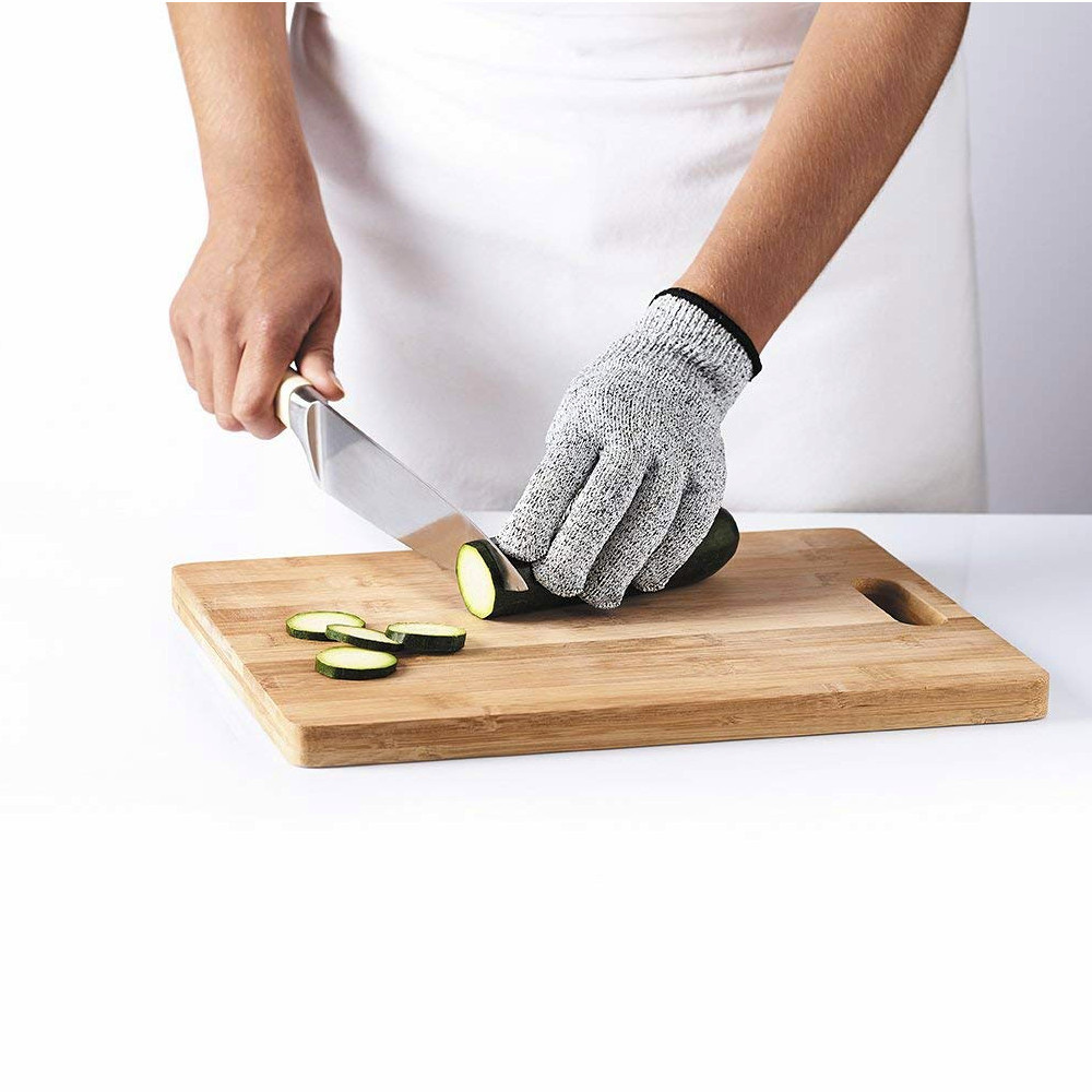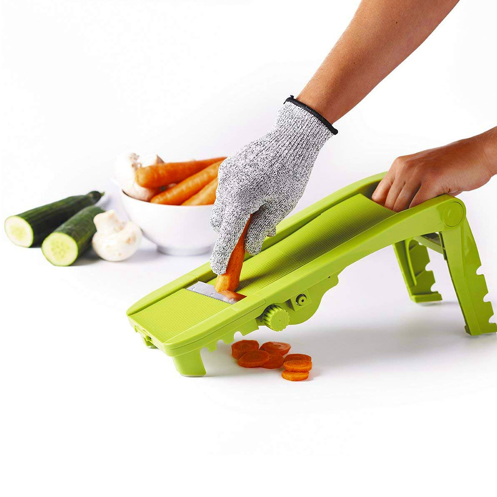 Uniwersalna rękawica Mastrad zadba o bezpieczeństwo Twoich dłoni podczas krojenia, cięcia i szatkowania! Miękka, oddychająca tkanina, z której jest wykonana rękawica do szatkowania, pozwala na komfortowe użytkowanie bez obciążania i ograniczania ruchów, chroniąc dłonie przed urazami w trakcie korzystania z tarek, szatkownic czy też noża. Rękawica jest w rozmiarze uniwersalnym, pasuje zarówno na prawą, jak i lewą rękę. Tkanina, z której jest wykonana rękawica pozwala na swobodne poruszanie ręką. Można prać w pralce w temperaturze 30 stopni C. Produkt zgodny z normą EN388:2016 454XE Nie należy ciąć i dziurawić, ponieważ wtedy nie zapewni ochrony. Materiał: 40% polietylen, 23% poliester,10% spandex, 16% nylon, 11% włókno szklane Przybliżone wymiary bez rozciągania:długość 22 cm, szerokość 13,5 cm Przybliżone wymiary brutto: wysokość 24,5 cm, długość 13,5 cm, szerokość 0,5 cm Przybliżona waga brutto: 0,027kg Opakowanie: tekturowa zawieszka