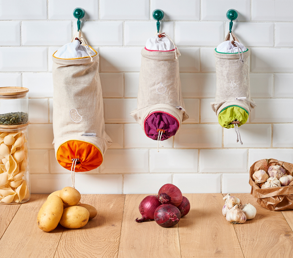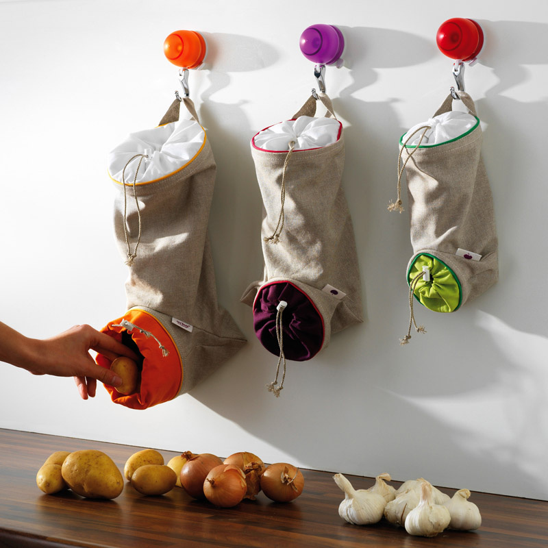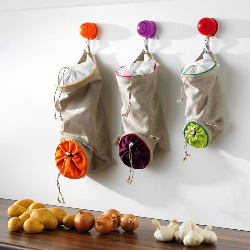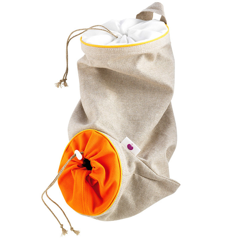 Świetne rozwiązanie do przechowywania ziemniaków - wygodna torba, która zapewnia dopływ powietrza, a jednocześnie chroni ziemniaki przed kiełkowaniem i światłem. Torba ma formę tuby z troczkami. Troczki mają blokady. Wlot i wylot jest zabezpieczony i można go łatwo otwierać i zamykać. Jest tak uszyta, że dół wisząc unosi się do góry, by zawartość torby nie wysypała się. Ziemniaki wrzuca się od góry, a wygodnie wyjmuje dołem. Na górze torby jest zamocowana pętelka. Torbę można powiesić na ścianie lub na relingu. Torba została wykonana z bawełny, lnu. Torba zmieści 3,5 kg ziemniaków. Opakowanie: torba foliowa.Bezpieczeństwo - rodzaj ostrzeżenia