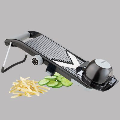 Mandolina została wyposażona w zintegrowane ostrze, co zwiększa bezpieczeństwo jej użytkowania. Na boku urządzenia znajduje się pokrętło, które pozwala wybrać grubość krojonych plastrów. Obok pokrętła znajduje się przycisk w kształcie poprzeczki, należy go wcisnąć jeżeli chcemy uzyskać paski juliennie, oczywiście uprzednio należy wybrać grubość.