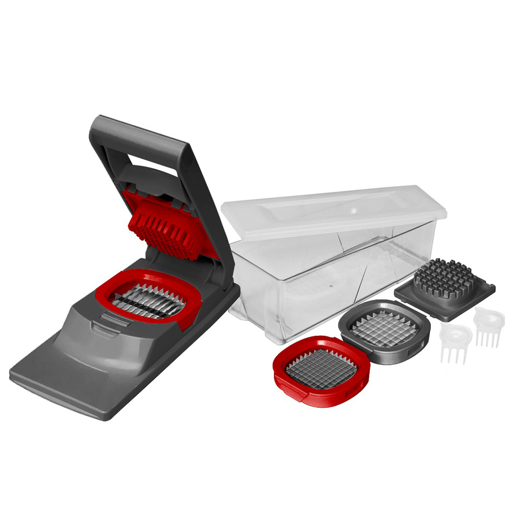 Szatkownica VERDURA do frytek i nie tylko! Dzięki 3 wymiennym dyskom - nożom szybko i bezpiecznie pokroisz warzywa i owoce. A pojemny 1,5 l pojemnik ułatwi cięcie, zminimalizuje bałagan i zbierze poszatkowane warzywa. Z szatkownicą pokroisz nie tylko ziemniaki na frytki, ale ogórka, grzyby, pomidory, cukinię i wiele innych warzyw i owoców. W zestawie: pojemnik z pokrywą, ostrze do cięcia w paski o rozstawie 6 mm, długości do 3 i 4 cm mierzonym w najszerszym miejscu, ostrze do cięcia w słupki 0,9 cm + przepychacz, ostrze do cięcia w słupki 0,6 cm + przepychacz, 2 grzebyki do czyszczenia o rozstawie 0,6 i 0,9 cm.