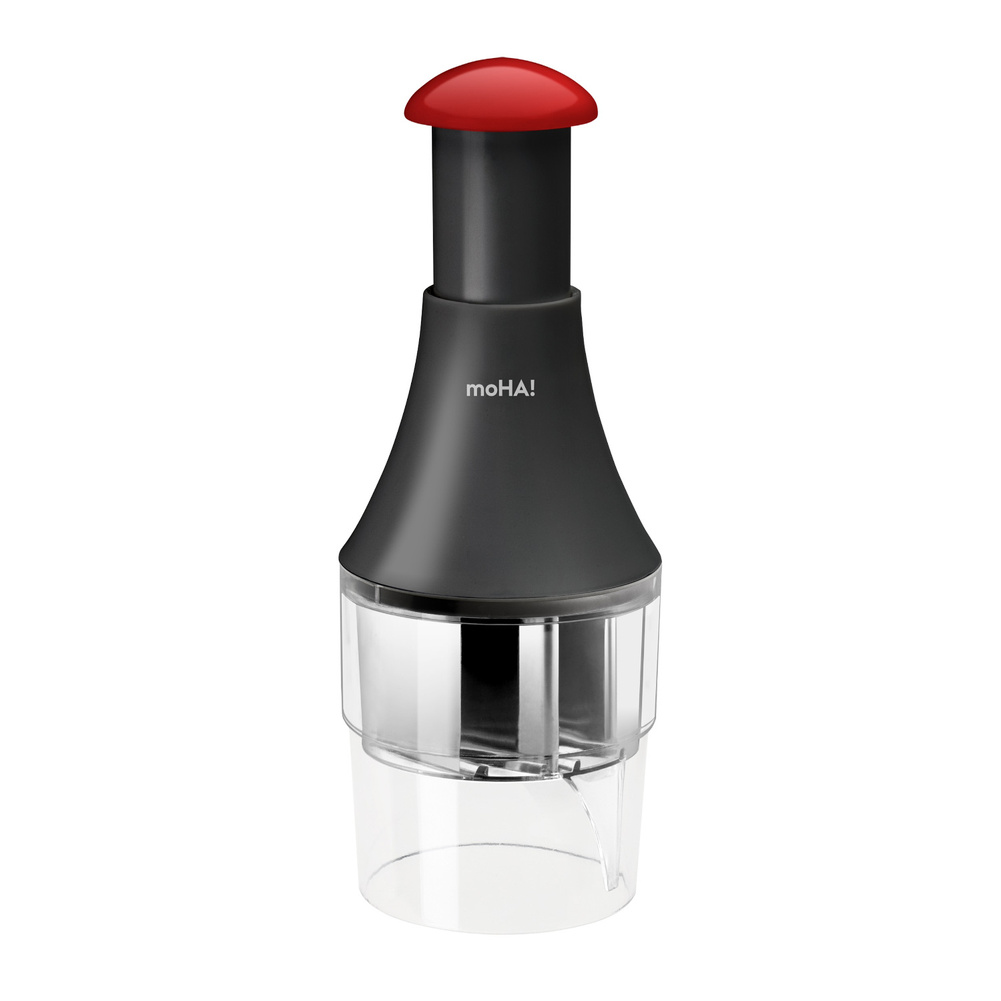 Kompaktowa szatkownice JUNIOR do cebuli i warzyw z pojemnikiem do przechowywania. Jej niewielkie rozmiary sprawiają, że jest bardzo poręczna i nie wymaga rozkładania. Praca w kuchni będzie szybsza i bez łez. Ostrza szatkownicy zostały wykonane ze stali nierdzewnej, dzięki czemu są ostre i trwałe. Posiekają cebulę, czosnek, paprykę, owoce, czekoladę, orzechy, zioła i wiele innych. Szybko posiekasz warzywa na małą sałatkę jarzynową, czy do na dodatki do tatara. Krajalnica ma nasadzany pojemnik, który z pokrywką może służyć do przechowywania pokrojonej żywności. Sposób użycia: cebulę umieścić w szarym pojemniku, nałóż szatkownicę a następnie kilkukrotnie przydusić tłok a cebula zostanie posiekana. Rotacyjny mechanizm obraca ostrza szatkownicy po każdym przyciśnięciu i zluzowaniu tłoka. Boczny skrobak obracającą się podczas pracy zgarniając wszystko ze ścianek. Antypoślizgowa główka tłoka ułatwia pracę. Używając szatkownicy nie potrzebujesz deski do krojenia, możesz siekać w pojemniku, lub na pokrywce kontrolując postęp w szatkowaniu. Zaleca się czyścić ręcznie, pojemnik i pokrywkę można myć w zmywarce. Szatkownica łatwo rozbiera się na poszczególne elementy, które wystarczy opłukać strumieniem bieżącej ciepłej wody po użyciu, aby wyczyścić. Materiał: stal nierdzewna, tworzywo sztuczne.