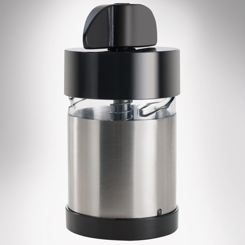 Dzięki zupełnie nowej konstrukcji, prowadzenie gałki nie wymaga silnego dociskania, aby ją utrzeć. Ponadto nie pozostają w młynku niestarte resztki. Nowego rodzaju ostrza tnące jeszcze lepiej i znacznie szybciej rozdrabniają gałkę. Młynek pozwala na ucieranie 4 gałek jednocześnie. Wersja z korpusem ze stali nierdzewnej.Bezpieczeństwo - rodzaj ostrzeżenia