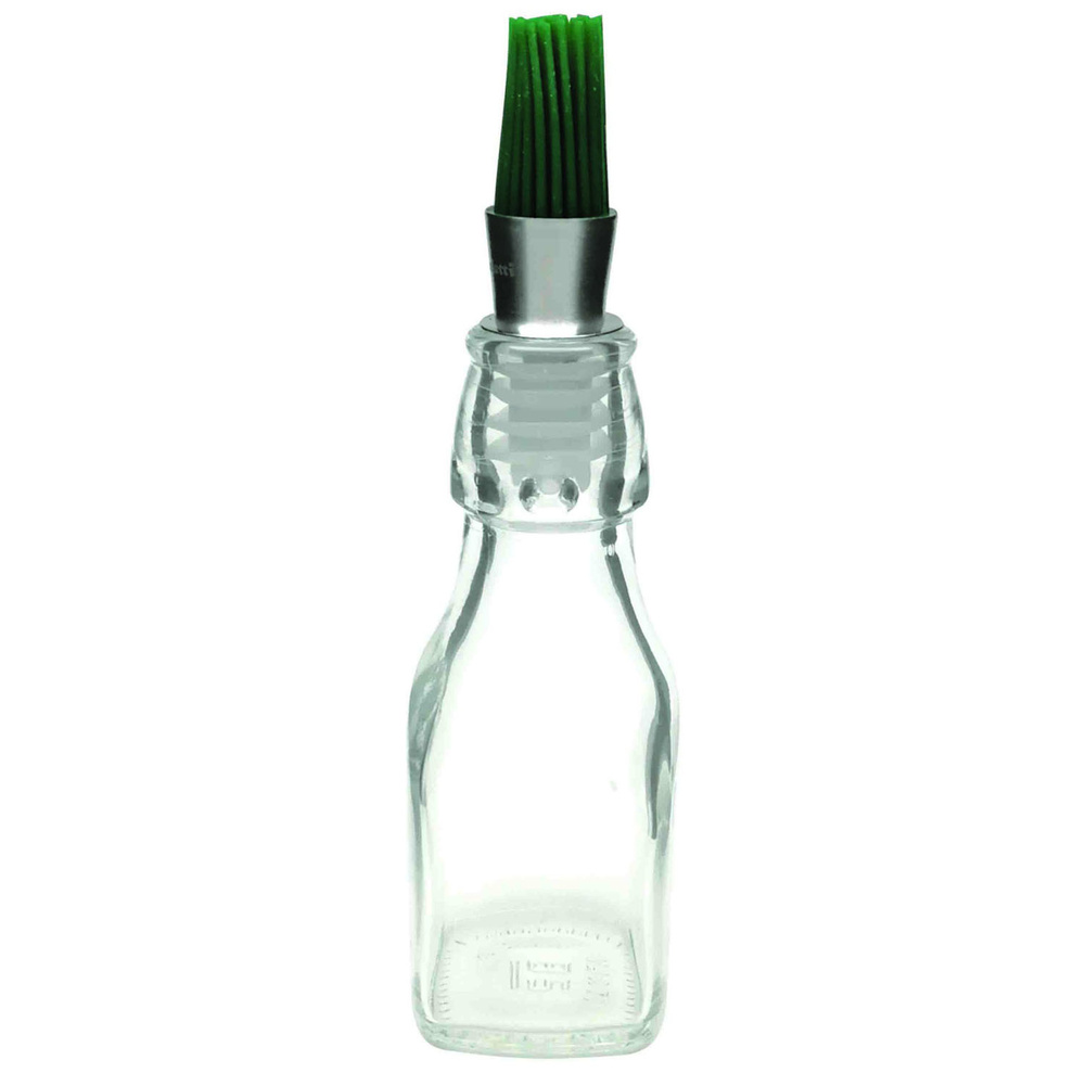 Szklana butelka o pojemności 125ml z nalewakiem wyposażonym w pędzelek do równego rozprowadzania oliwy. Można myć w zmywarce. Materiał: szkło, stal nierdzewna, silikon. Pojemność: 125ml. Wymiary brutto: 18,7x5x4,9cm. Wymiary netto: 18,7x4,9x4,9cm. Waga brutto: 0,228kg. Waga netto: 0,217kg.Bezpieczeństwo - rodzaj ostrzeżenia